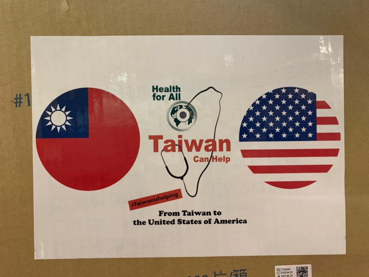 03 每一箱捐贈的口罩均印有「Taiwan Can Help」及兩國國旗之文宣圖樣。