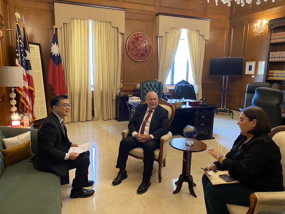 On August 21, Director General Charles Chou visited the Puerto Rico House of Representatives and met with Speaker Carlos "Johnny" Méndez Núñez. They exchanged views on the friendly relations between Taiwan and Puerto Rico, as well as future cooperation opportunities.