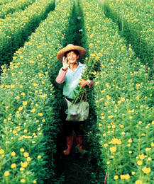 Picture 2: A Changhua chrysanthemum grower in his fields. The county exports chrysanthemums to Japan, Europe and the United States. (Photo Courtesy of Changhua County Government)
