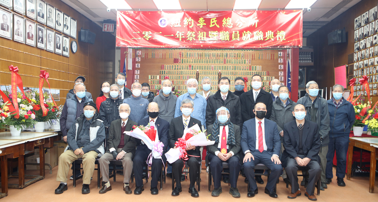 紐約李氏總分所1月1日舉行2021年度新職員就職典禮,主席李國威、李健恆在駐紐約臺北經濟文化辦事處長李光章大使及全美李氏元老李可喬的監交下接過印信,與新屆職員宣誓就職,中華公所主席于金山、紐約華僑文教服務中心主任黃正杰、新任主任陳永豐及多位僑社領袖紛紛到場祝賀。