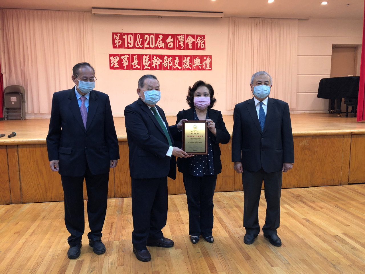 甫卸任理事長的方秀蓉轉任副理事長,她於任內積極舉辦臺美文化交流活動、聯繫臺灣鄉親情誼、號召賑災捐款,新冠肺炎爆發期間協助紐約僑胞取得臺製口罩,貢獻良多,為感謝她兩屆理事長4年任期的領導和服務,臺灣會館頒發「領導群倫 任重道遠」獎牌感謝方理事長的付出。