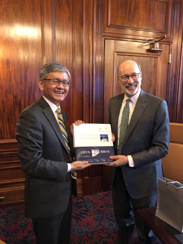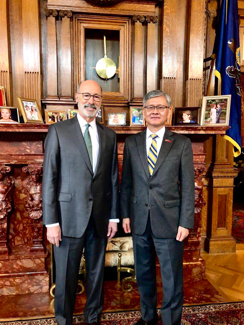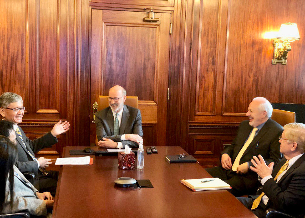 因疫情而關閉的美國「賓夕凡尼亞州駐台貿易投資辦事處」(Commonwealth of Pennsylvania Trade & Investment Office in Taiwan)在今年3月重新恢復運作。駐紐約辦事處李光章大使今(3月22)日在賓州首府哈里斯堡(Harrisburg)會晤賓州州長沃爾夫(Tom Wolf),就賓州恢復設處後,進一步擴大深化雙邊未來合作深入交換意見,在賓州投資的台商包括協和鋁門窗公司、友井集團及復盛集團也派代表與會。
