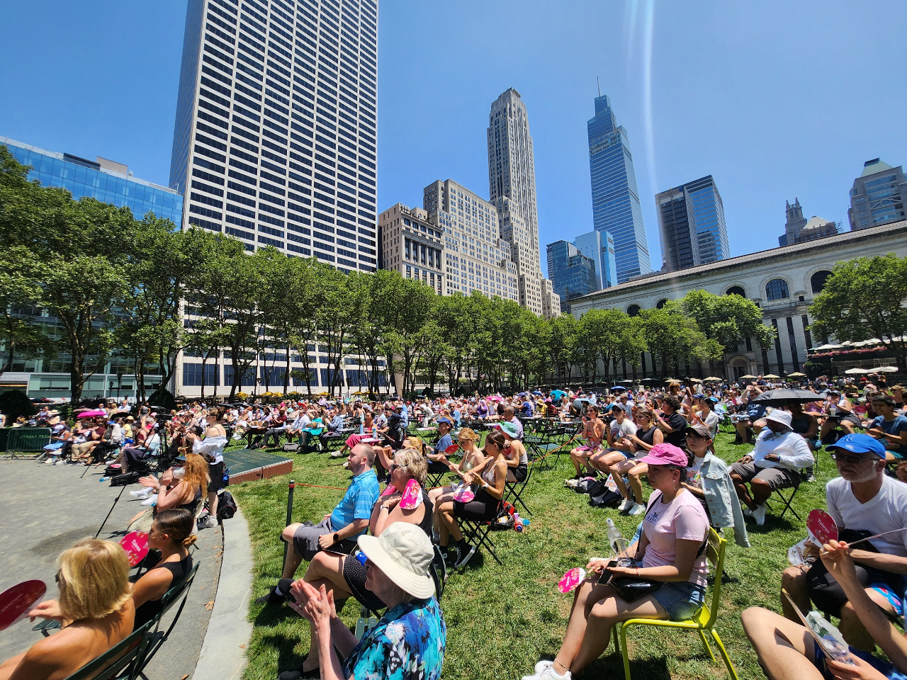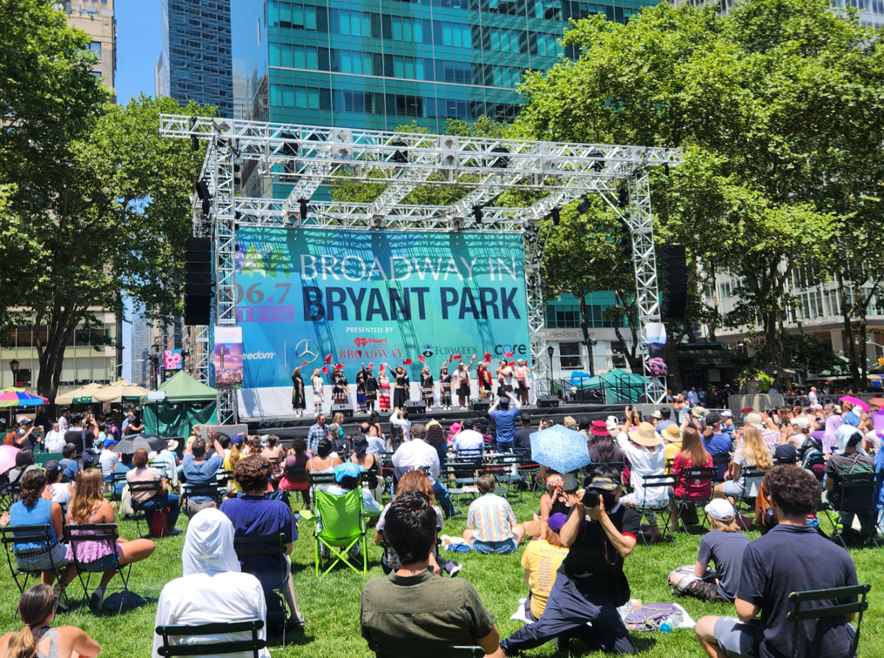 布萊恩公園的百老匯活動(Broadway in Bryant Park)是紐約市最受喜愛的夏季戶外表演活動之一。觀眾可以免費欣賞到一系列的百老匯表演,今年於7月間每周四中午舉辦,推出熱門的百老匯表演節目包括Aladdin、The Lion King、Wicked及甫獲得東尼獎最佳音樂劇的Kimberly Akimbo等。