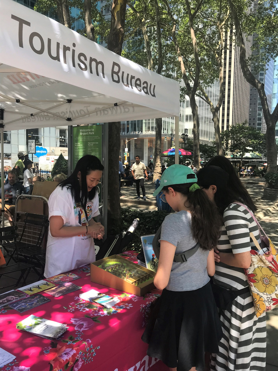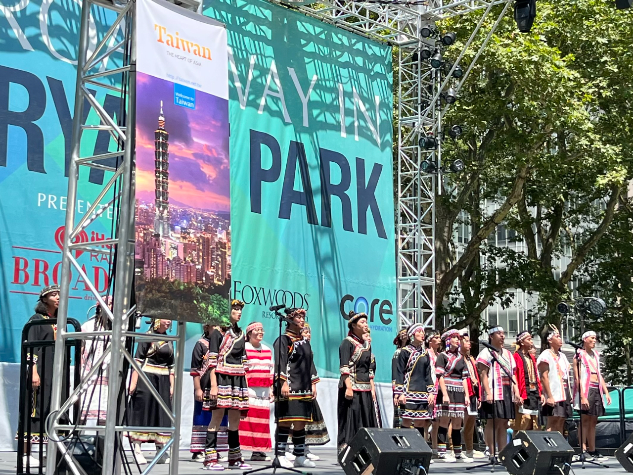 台灣交通部觀光局7月6日在紐約布萊恩公園的百老匯表演活動現場設置台灣觀光推廣攤位,將台灣豐富多元的旅遊特色帶上國際舞台,並特別邀請台灣「原聲國際學院合唱團」在百老匯表演舞台上演出,透過其優美的歌聲,讓觀眾沉浸在台灣文化及觀光的魅力中。中華航空的武志厚總經理和長榮航空代表也出席了這次活動,與現場的觀眾共享這場視聽盛宴,民眾反應熱烈。