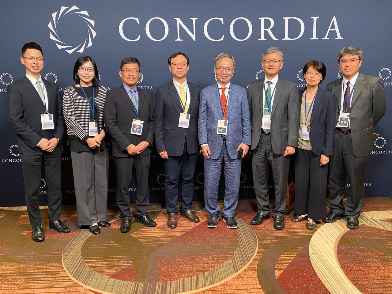 圖說﹕衛福部薛部長瑞元(右四)偕駐紐約辦事處李大使光章(右三)與代表團成員在Concordia年度峰會場邊合影。