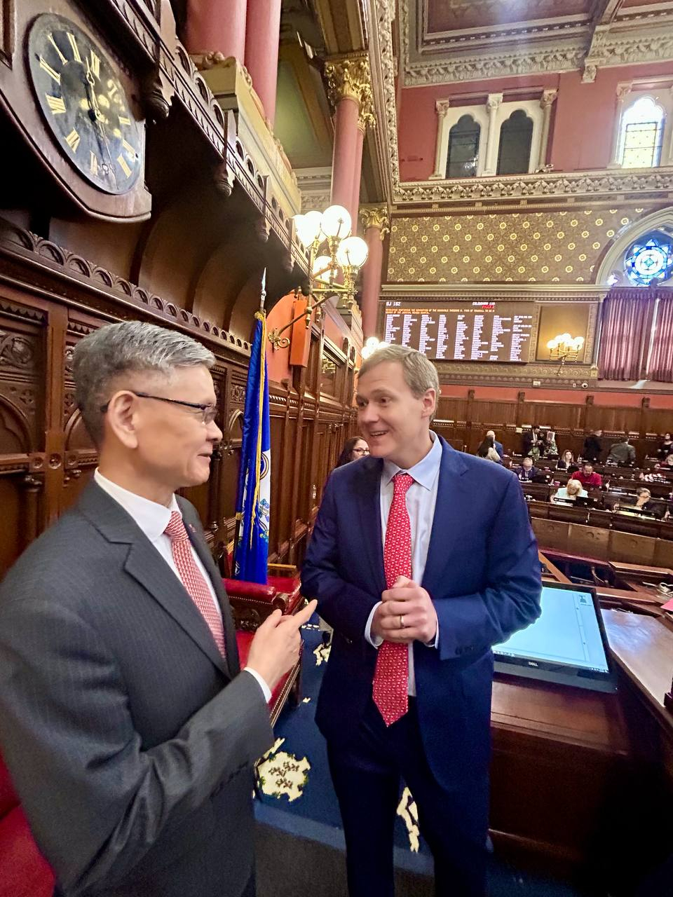 圖說三:康州眾議長 Matt Ritter(右)4月17日在州眾議會祝賀「台灣關係法」立法45週年暨台康締結姊妹州關係25週年。