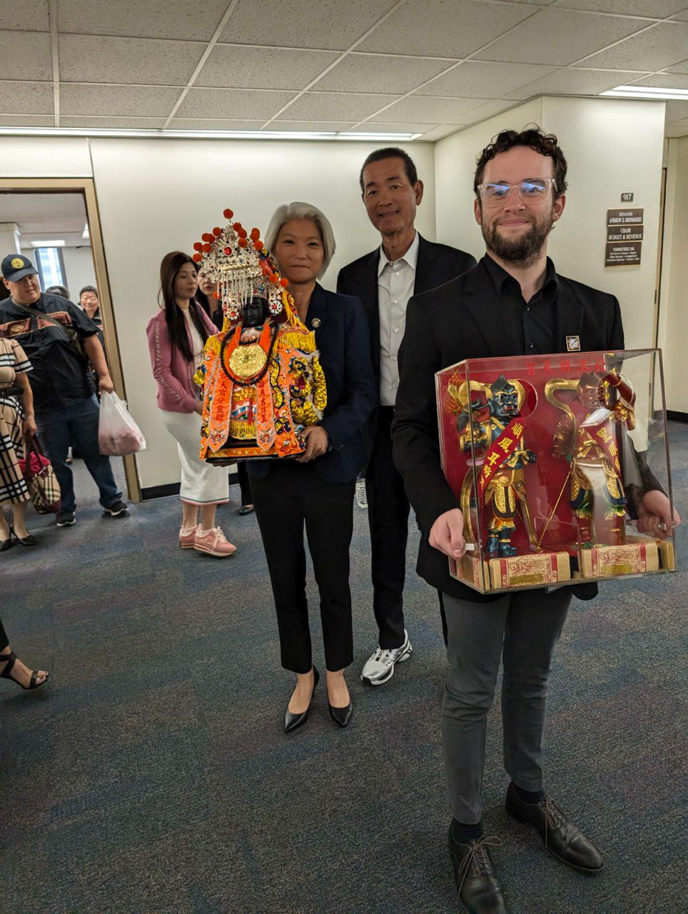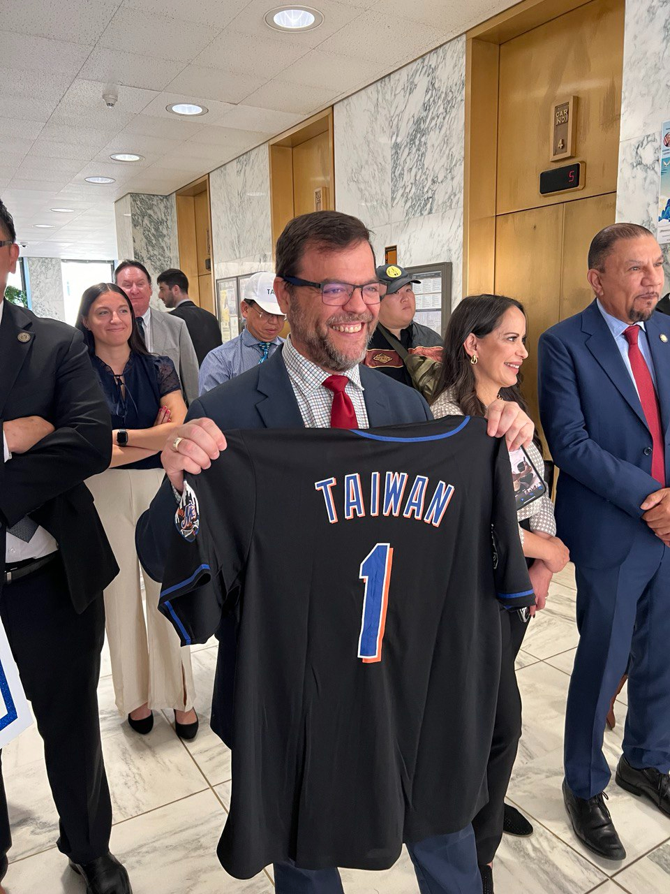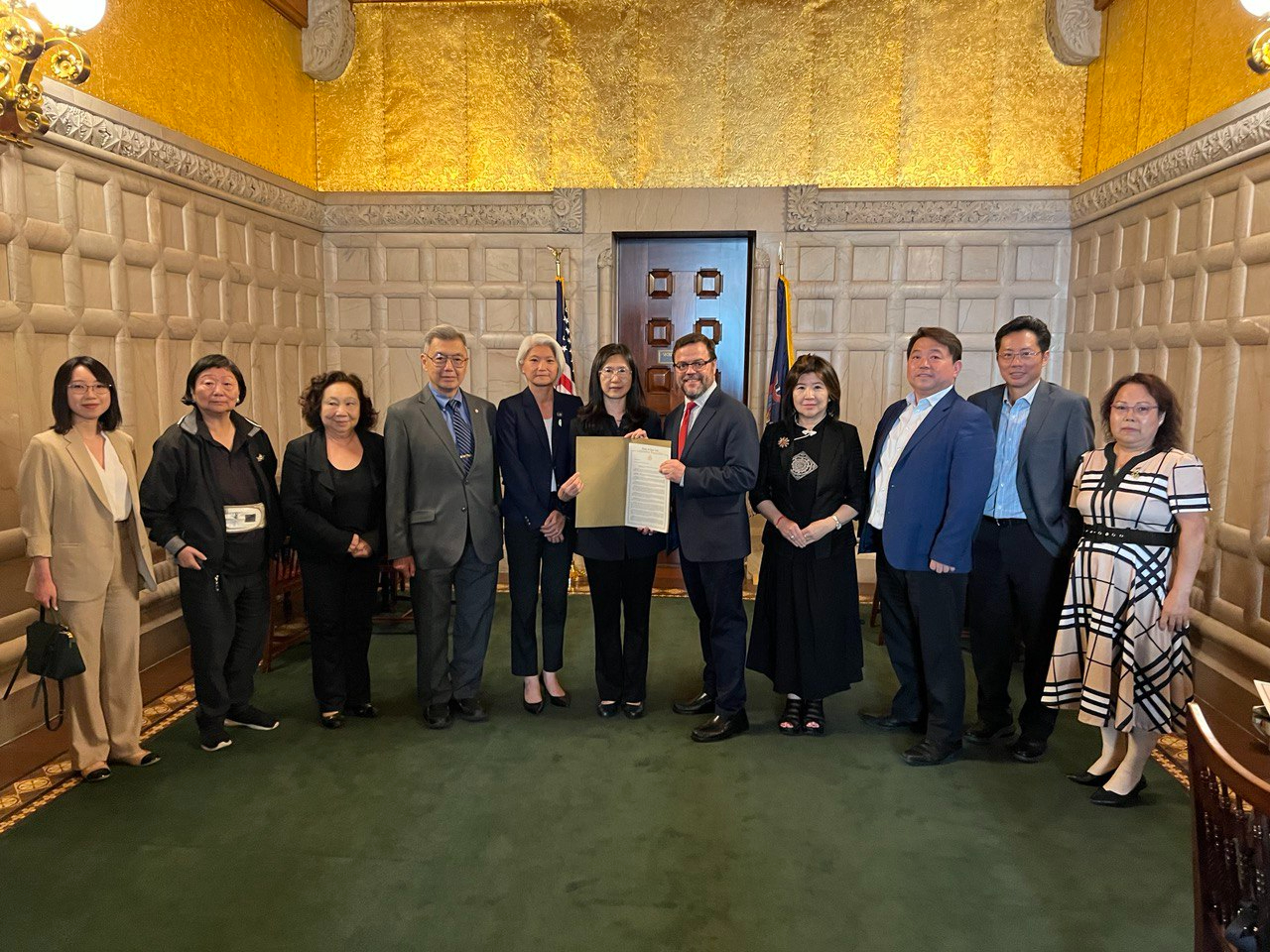 駐紐約台北經濟文化辦事處張麗賢副處長、北港朝天宮董事長、雲林縣議會副議長蔡咏鍀及僑界領袖中華公所朱超然主席、台灣會館方秀蓉副理事長、紐約台灣商會林慶甫會長、大紐約區台灣同鄉會廖士敦會長、Hello Taiwan執行長江明信、中華總商會田麗美董事、台灣大專校聯會前董事長戴明宜、僑務諮詢委員陳仲欽、紐約州首府台灣同鄉會簡守邦會長等,獲邀以貴賓身分至議會見證友台決議通過,並藉台灣傳統日茶會與議員交流,就如何深化台灣與紐約州在經貿、教育及文化等方面的合作交換意見。