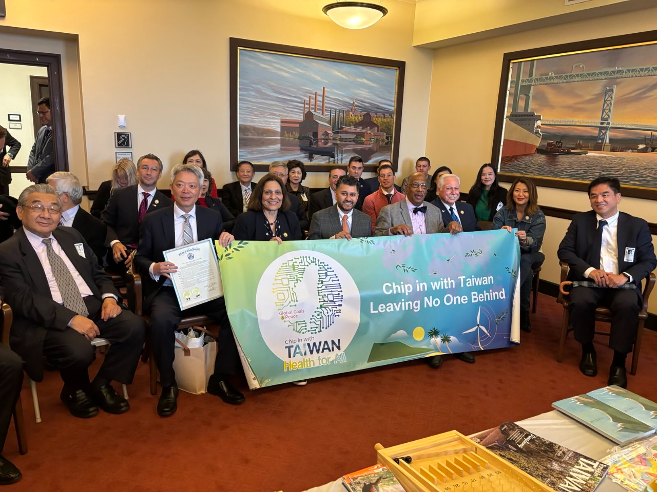 為配合本週日內瓦世界衛生大會(WHA)召開時機,駐紐約辦事處另在現場放置我參與WHA推案之主視覺“Chip in with Taiwan、Health for All”橫幅,邀請與會來賓合影,展現紐澤西州僑界與議會友人力挺台灣加入世衛組織之力道。(E)