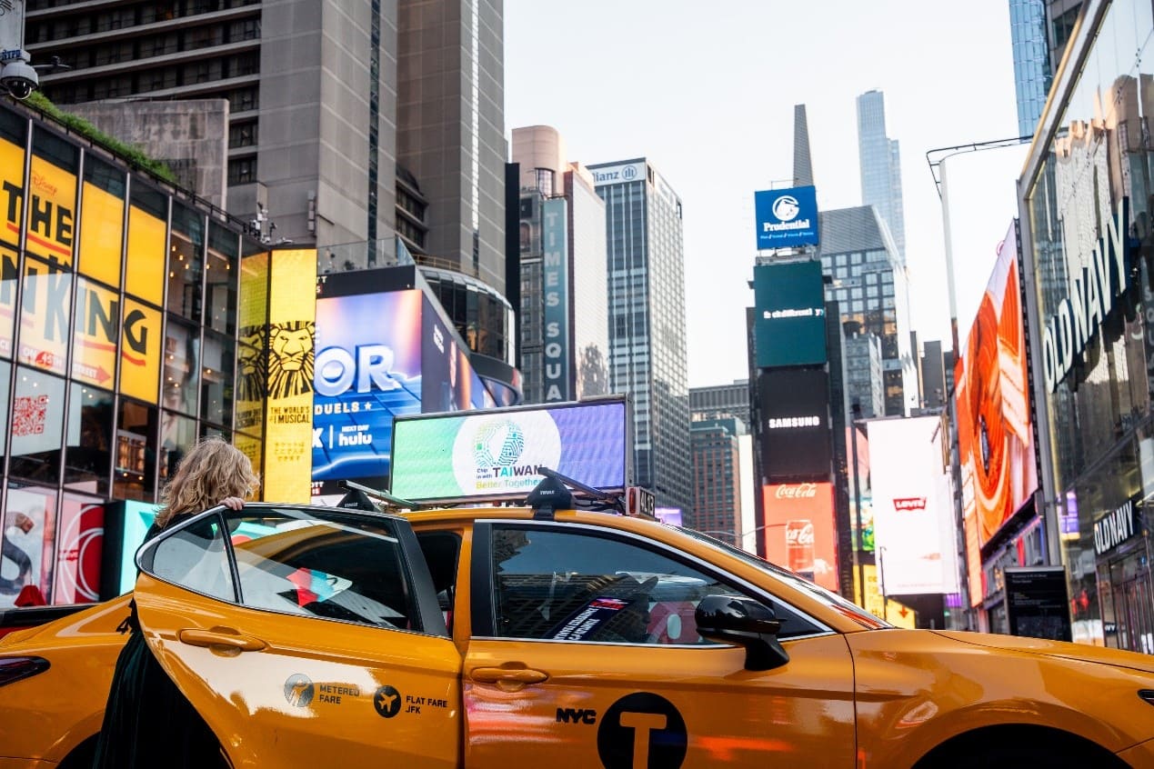 圖八:計程車駛經紐約知名地標傳達台灣訴求。