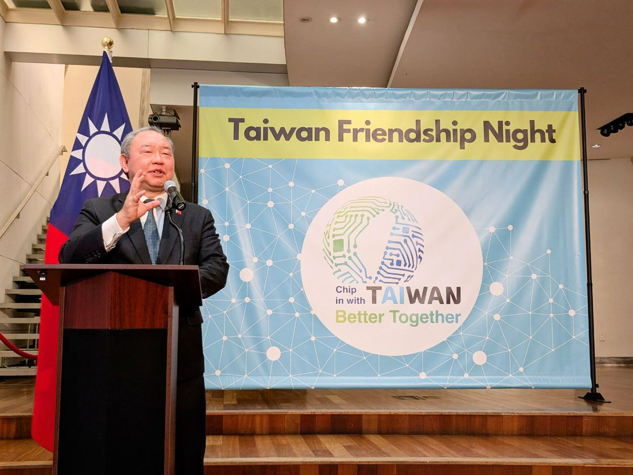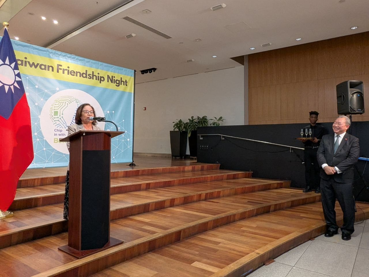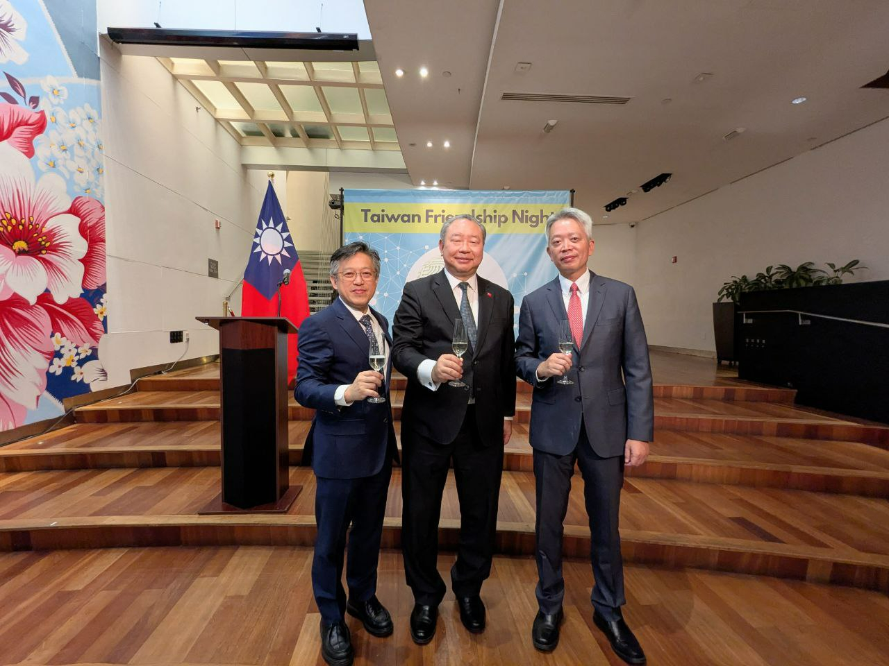 酒會由駐美俞大使致詞揭開序幕,歡迎上述貴賓出席友誼之夜,俞大使於致詞中感謝友邦及理念相近國家持續相助台灣推動有意義參與聯合國及其專門機構與其他國際合作平台。台灣是印太地區之民主燈塔,位處國際海空運輸之戰略樞紐,台灣將持續致力與友邦及理念相近國家強化珍貴友誼,團結一致共同面對未來挑戰,實現民主、和平、繁榮之永續的美好未來。