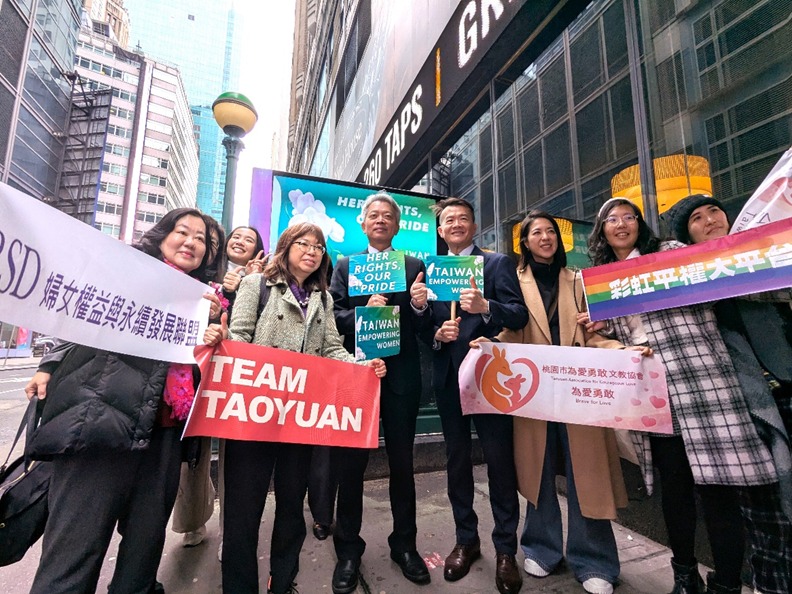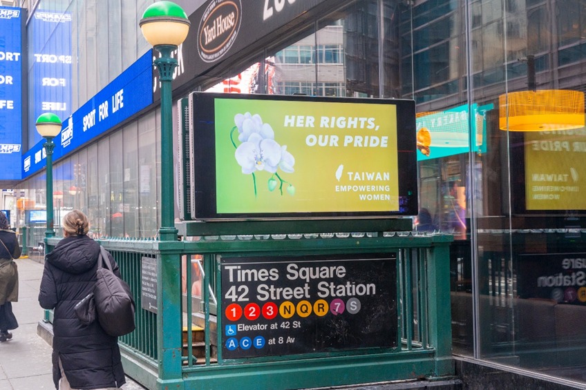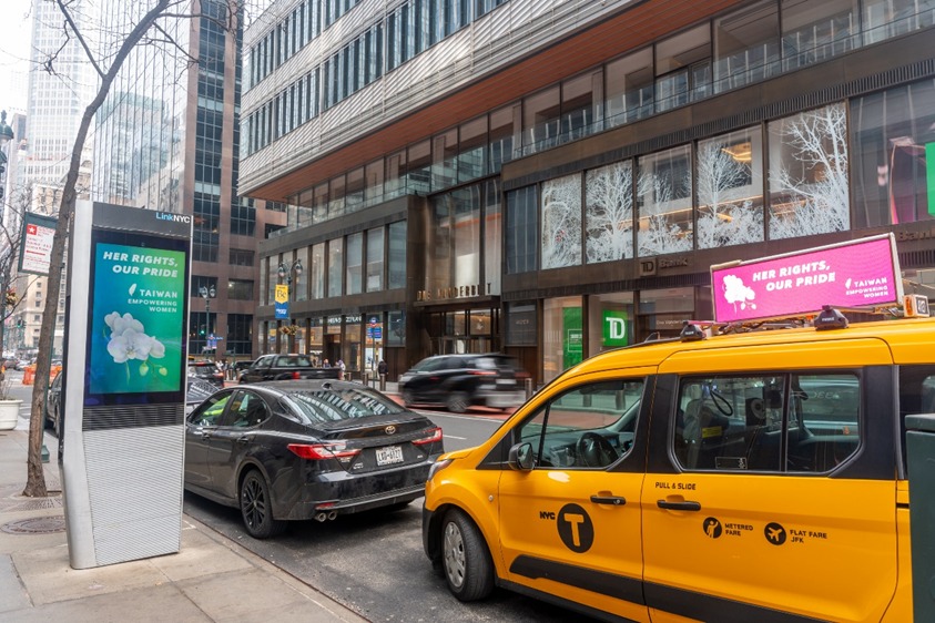 今年「台灣性別平等週」相關文宣啟動儀式特別選在國際婦女節3月8日開跑,而活動一大亮點是在地文宣,經文處自3月6日起特別在紐約中城街頭的計程車頂、地鐵站及LinkNYC的看板刊登今年女力主視覺動畫及標語,讓3月的紐約不只很「女力」,也很「台灣」。