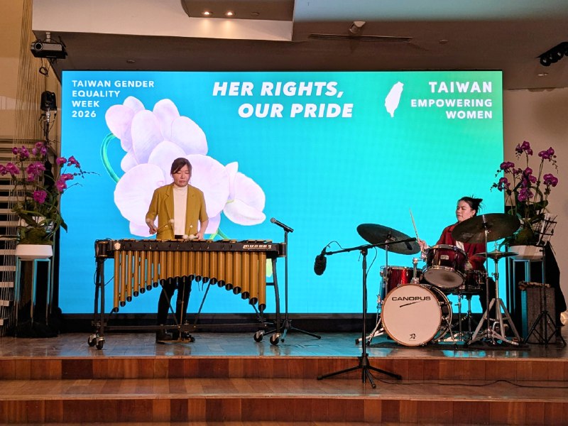 活動當晚邀請曾獲頒金曲獎之旅美台裔爵士鐵琴手蘇郁涵及旅美台裔鼓手吳玟葶演出,透過演奏客家民謠「落水天」及泰雅古調「織布歌」訴說台灣文化中女性的智慧及生命經驗。蘇郁涵另演奏個人創作曲「她去了一場寧靜的戰爭」,鼓勵女性突破框架與刻版印象,活出自由的獨特風貌。