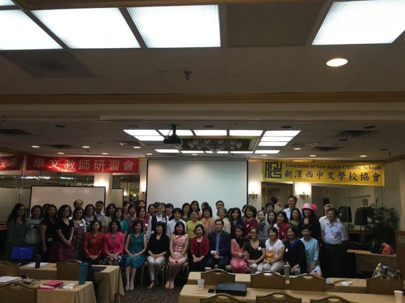 2016年度「紐澤西地區海外華文教師研習會」由新澤西中文學校協會主辦,7月8日至10日在紐澤西East Brunswick市Days Hotel舉行,計有新澤西地區13所中文學校、65位中文教師參加。紐約僑教中心主任王映陽、副主任王盈蓉出席開幕並參加座談會與結業式。