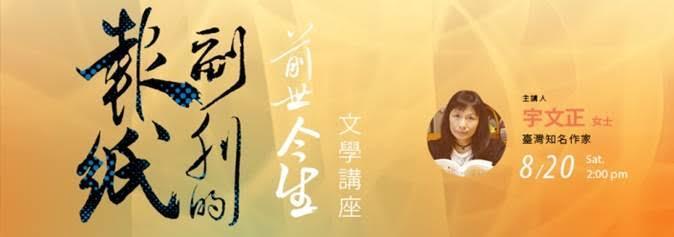 駐紐約臺北文化中心與北美華文作家協會訂於8月20日本週六在紐約世界日報總社共同主辦一場紐約地區文學講座,邀請到臺灣知名散文作家、聯合報副刊主編宇文正來美主講「報紙副刊的前世今生」,內容精彩可期,免費入場,喜愛文學的朋友千萬不要錯過此難得之機會。