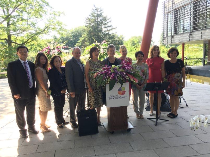 皇后區植物園(Queens Botanical Garden) 聯合駐紐約臺北經濟文化辦事處8月18日至20日於植物園舉辦第4屆「臺灣蘭花世界」大型展覽,17日舉行記者會及開幕儀式,駐紐約經濟文化辦事處徐儷文大使、巴拉圭駐紐約總領事布法(Juan Buffa )、紐約市議員 顧雅明、紐約州眾議員金兌錫(Ron Kim) 、魏普林(David Weprin)、李羅莎(Nily Rozic)、紐約僑教中心黃正杰主任、王盈蓉副主任及社區僑領等百餘位貴賓出席盛會。 徐大使指出,本年是第4年與皇后區植物園合辦活動,大力推廣臺灣蘭花產業。臺灣種植蘭花已有100年的歷史,也是出口蘭花的產地,臺灣光是去年蘭花出口產值即逾1.2億美元,希望未來更加蓬勃發展,並邀請紐約花農踴躍參加在臺中市舉行之「2018世界花卉博覽會」以及「2020世界蘭花展覽與會議」。 本年共展出350盆各類蘭花,邀請專業園藝師將蘭花設計成各種主題的「蘭花自助餐」(Orchid Buffet),以蘭花為主題,配有生薑、香蕉等食物作為搭配,帶給民眾更美的視覺體驗,植物園園長拉瑟特(Susan Lacerte)估計吸引3000多名民眾前往觀賞。 植物園首位臺裔董事長黃百齡期盼透過蘭花展覽、藝術家蕭喆旻的水彩蘭花等活動,以及來自紐約及紐澤西華裔青年文化大使7人參與活動彩繪臺灣蘭花,讓紐約客更加瞭解臺灣,花展期間,還將有音樂家現場吹奏爵士樂,吸引社區各族裔民眾前往植物園欣賞蘭花,促進文化交流,感受臺灣的蘭花文化。