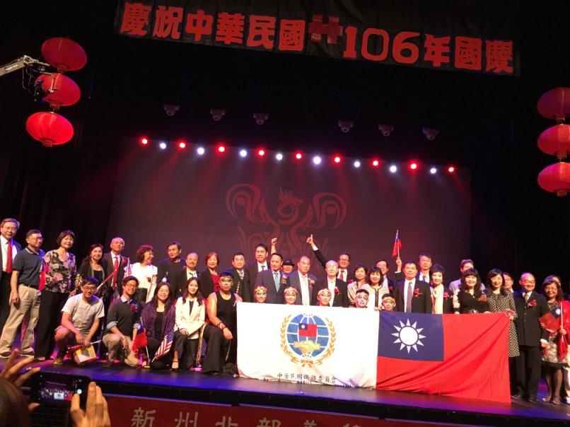 為慶祝中華民國106年雙十國慶,由新州北部美華聯誼會周大新會長及其團隊主辦中華民國僑務委員會美加地區「國慶文化訪問團」-九天廟會劇場「鼓鳴旗飛慶雙十」9月23日晚間於紐澤西Watchung Hills Performing Art Center盛大舉行,駐紐約臺北經濟文化辦事處副處長陳豐裕、僑教中心主任黃正杰及2位副主任、紐約中華公所蕭貴源主席、僑務委員鄧錦源、蔡榮聰、胡慶祥、戴松昌、王金智及紐約安良工商會陳啟靈會長、紐約中華總商會李可喬董事長,及主流學校學生和來自紐約、紐澤西、賓州、康州甚至遠從波士頓來的僑胞近千人出席觀賞,為大紐約區雙十國慶系列活動拉開序幕。