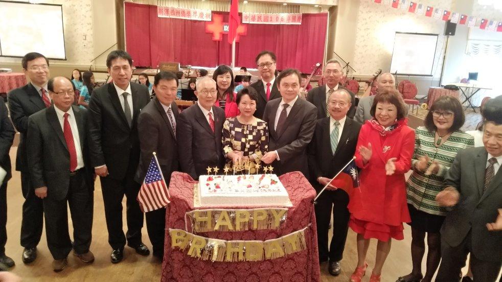 紐澤西僑學界慶祝中華民國國慶籌備會10月8日於該州Whippany市Birchwood Manor舉辦慶祝中華民國106年國慶升旗典禮及慶祝大會,約有500餘人出席,活動由籌備會主任委員戴松昌主持,紐澤西地區各中文學校校長、家長、學生均踴躍出席參加,並有舞龍、舞獅、管弦樂、僑校學生及青少年文化大使(FASCA)歌唱及竹竿舞等表演,來慶祝中華民國106歲生日。駐紐約辦事處徐儷文大使率駐處同仁、紐約華僑文教服務中心黃正杰主任、張希賢、王盈蓉兩位副主任、紐約中華公蕭貴源主席、皇后區國慶籌備會林映君主任委員、王金智等兩位僑務委員等僑領皆前往共慶,美國聯邦眾議員Rodney Frelinghuysen亦前來慶賀。