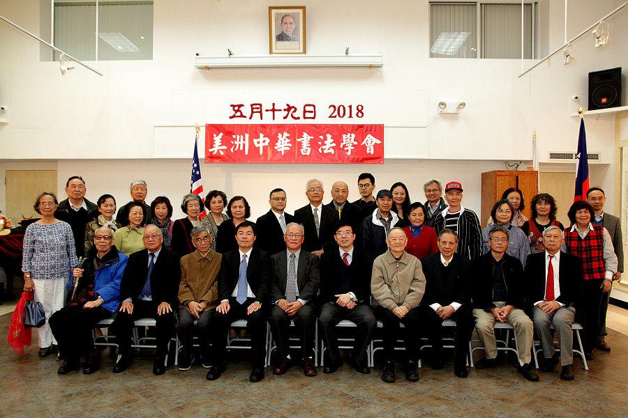 美洲中華書法學會5月19日、20日於紐約華僑文教中心禮堂舉辦2018年度第一次會員作品展,展出會員的楷、草、隸、篆各式書法及人物、山水、花鳥等國畫作品,並於19日下午舉行開幕茶會,由學會副會長蕭忠正主持,駐紐約辦事處組長黃耀良、紐約華僑文教服務中心主任黃正杰、副主任葉帝余、國學大師王鼎鈞、名書畫家王懋軒、及百多位會員及書畫同好者共同參與。