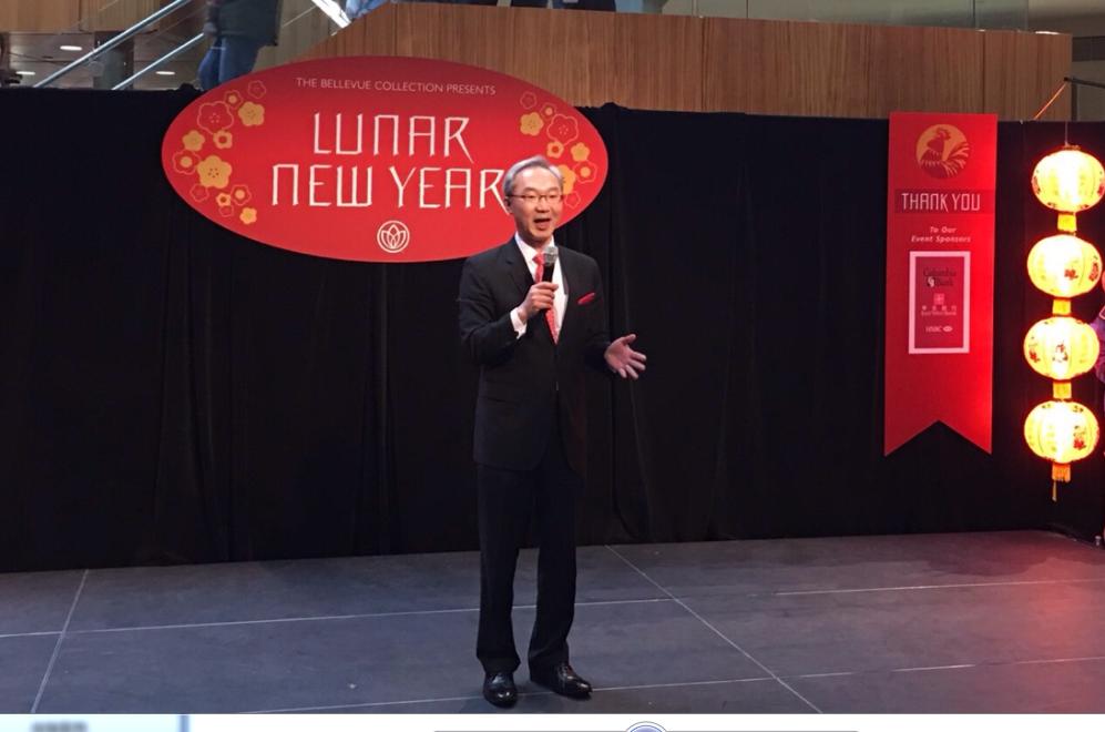 「貝爾優集團」(Bellevue Collection)、「西雅圖中華文化藝術協會」(Seattle Chinese Culture and Arts Association)及我國僑務委員會於本(2)月4日在Bellevue Square購物中心舉辦「慶祝2017年雞年春節活動」。駐西雅圖台北經濟文化辦事處姚總領事金祥偕僑教中心陳主任敏永於下午2時應邀出席該活動開幕典禮。