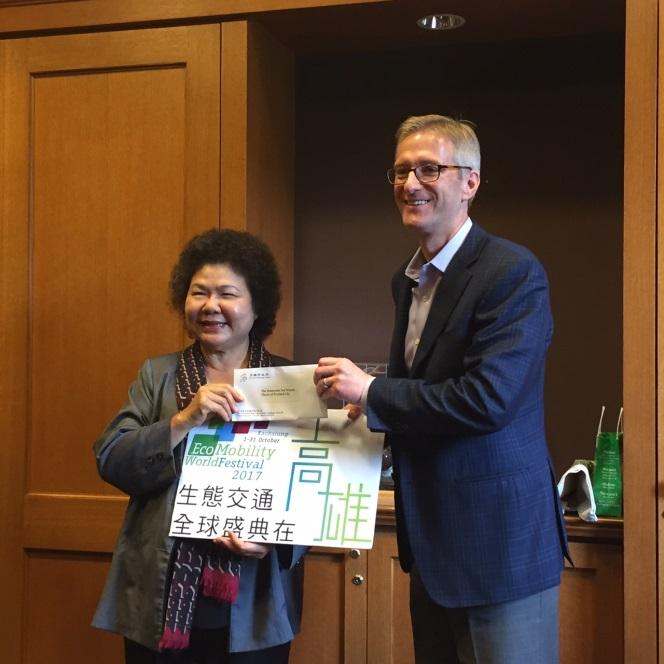 駐西雅圖辦事處姚處長金祥偕紀副領事佩汾於6月9日下午陪同陳市長及蔡副議長乙行分別拜會W市長。陳市長表示,高雄市及波特蘭市已締結姊妹市29年,雙方交流密切,本年高市代表團出訪陣容亦為歷年之最。伊繼亦代表高雄市278萬人民邀請W市長擇期訪台。