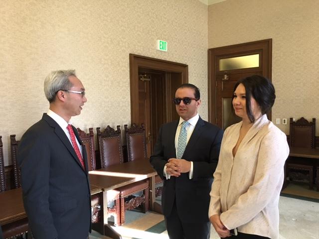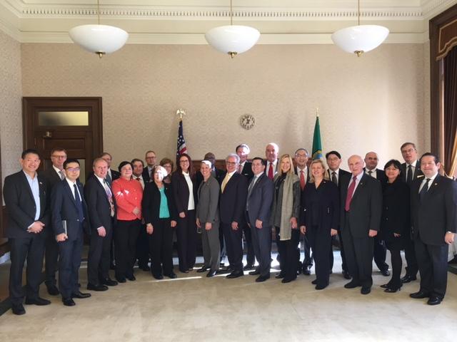 姚處長係與包括日本、韓國、俄羅斯、加拿大、英國等20餘國總領事、名譽領事或代表同獲邀進入議場,並獲兼任華州州參議會議長之副州長Cyrus Habib(D)特別介紹。稍早姚處長與領事協會成員曾出席由Habib副州長於渠辦公室舉行之招待會。