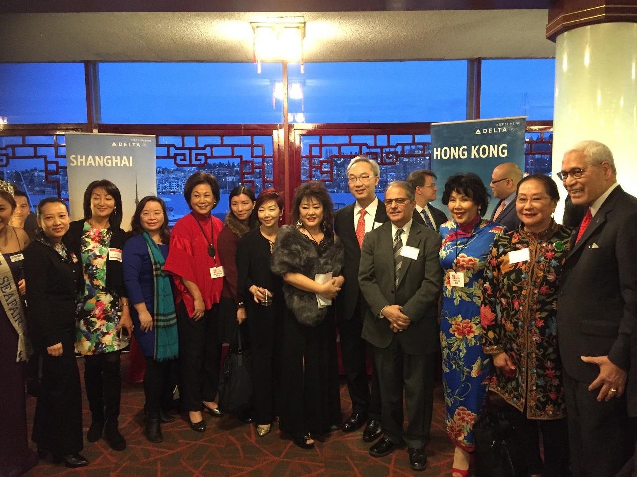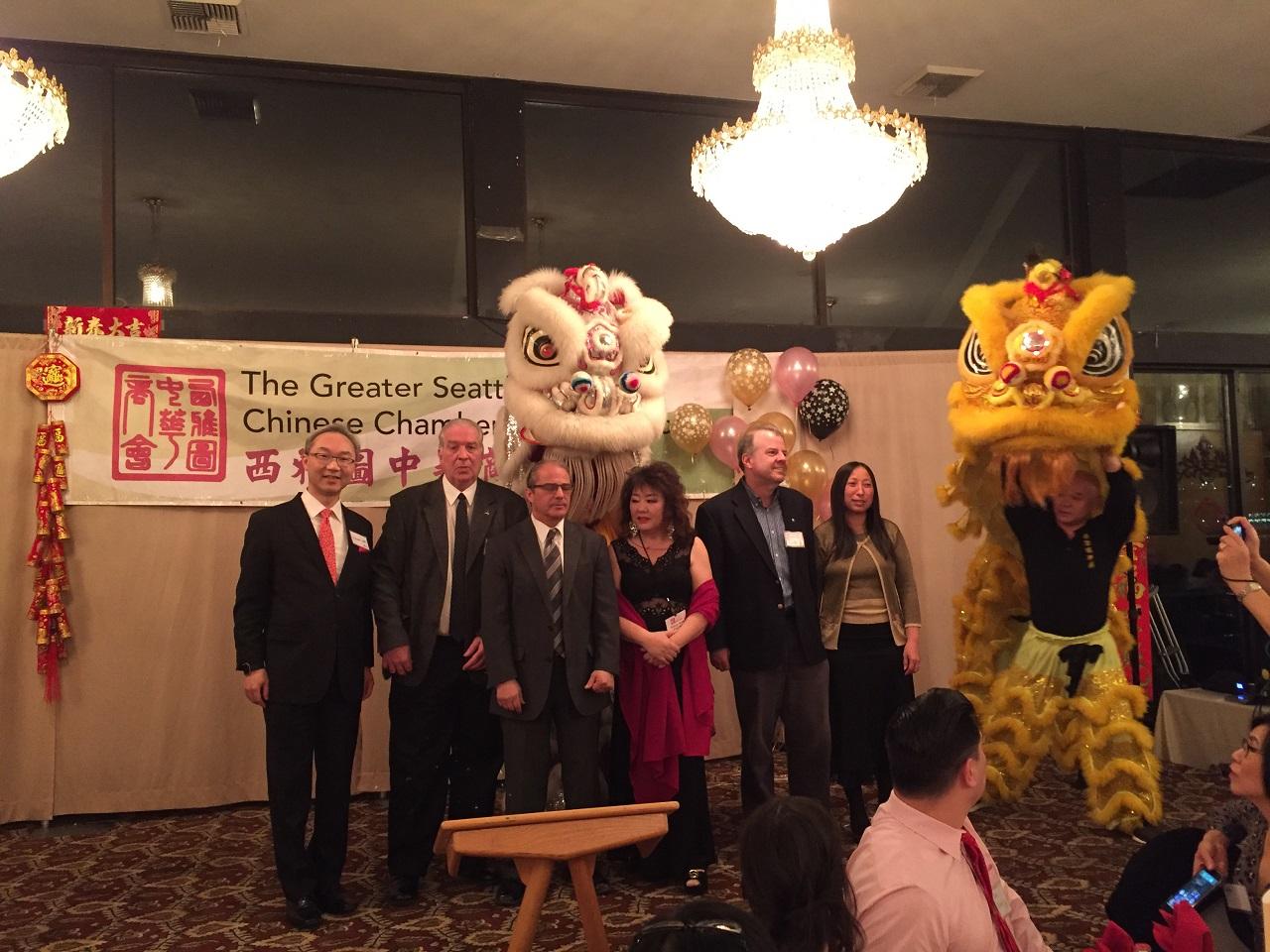 駐西雅圖辦事處姚總領事金祥於107年3月1日晚間應邀出席西雅圖中華商會在China Harbor餐廳舉行的農曆新年餐會。主辦單位特別安排姚總領事與西雅圖市David Moseley及Shefali Ranganatha兩位副市長,及Bellevue市議員Janice Zahn同坐首桌。 當晚出席其他貴賓尚包括華盛頓州前州長Brad Owen、西雅圖市資深副市長Michael Fong及西雅圖市警察局長Carmen Best等,姚總領事均向渠等寒暄致意。當天餐會來賓多達三百餘人,除舞獅表演外尚有抽獎活動,熱鬧非凡。