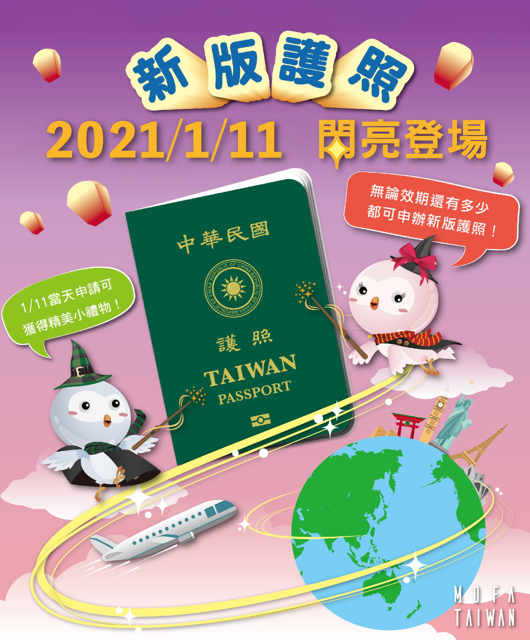 「TAIWAN」字樣放大版的晶片護照即將在2021年1月11日起發行,本處為回應僑胞期待,在疫情期間為大家創造一點小驚喜,將以抽獎方式贈送10盒防疫禮盒給郵寄辦理新版護照的僑胞鄉親。