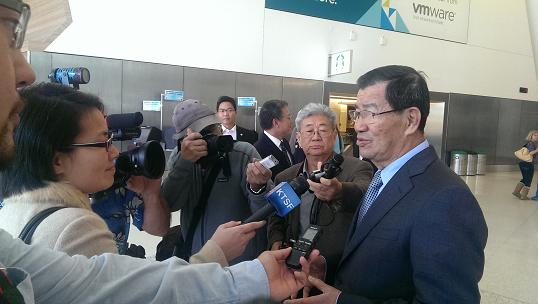 Former ROC Vice President Vincent Siew (right) in Bay Area visit with local reporters.