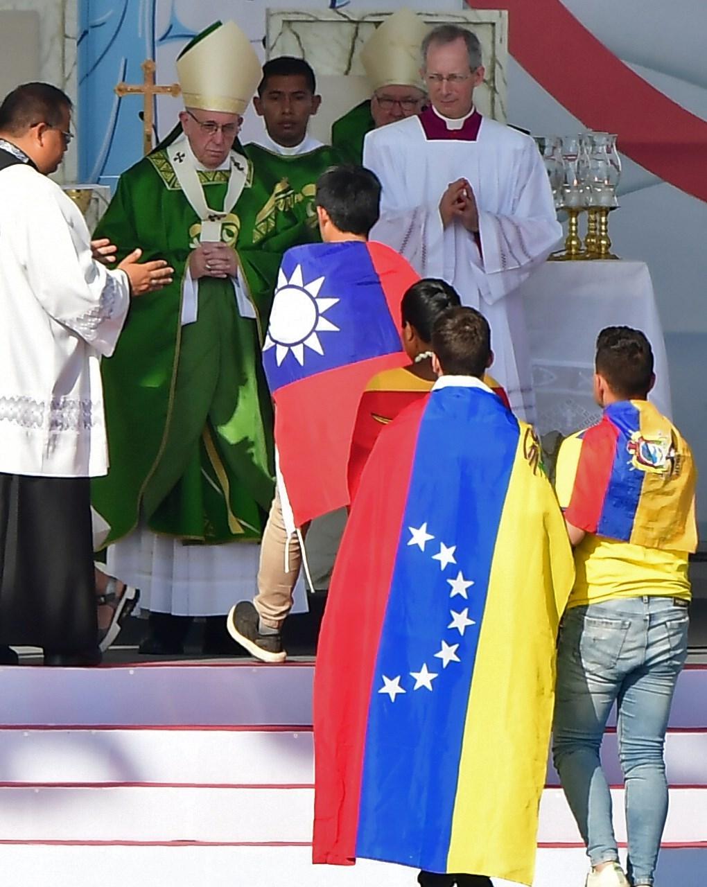(中央社巴拿馬市27日綜合外電報導)教宗方濟各今天在巴拿馬為數十萬名青年信徒主持大型彌撒,台灣男孩披國旗上台代表亞洲青年奉酒水,而教宗也在這趟長達5天的旅程中談論委內瑞拉危機與教會性侵案。