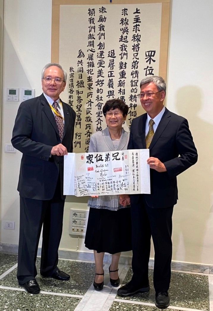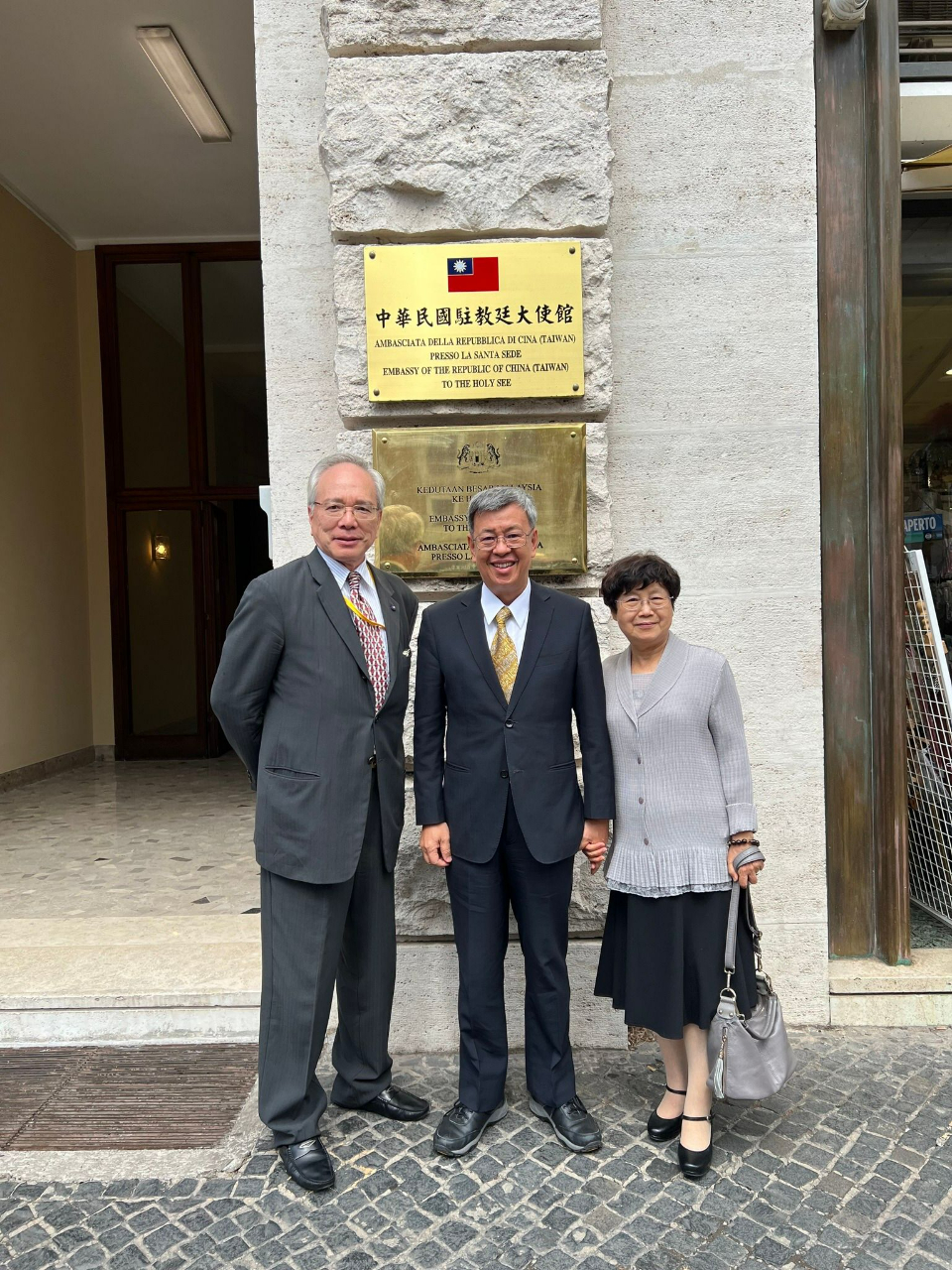 陳建仁隨後前往中華民國(台灣)駐教廷大使館視察,除了為外交人員打氣,更期許要在艱困的外交環境之下,讓世界看到台灣堅守自由民主的價值,為台灣爭取更多的朋友。