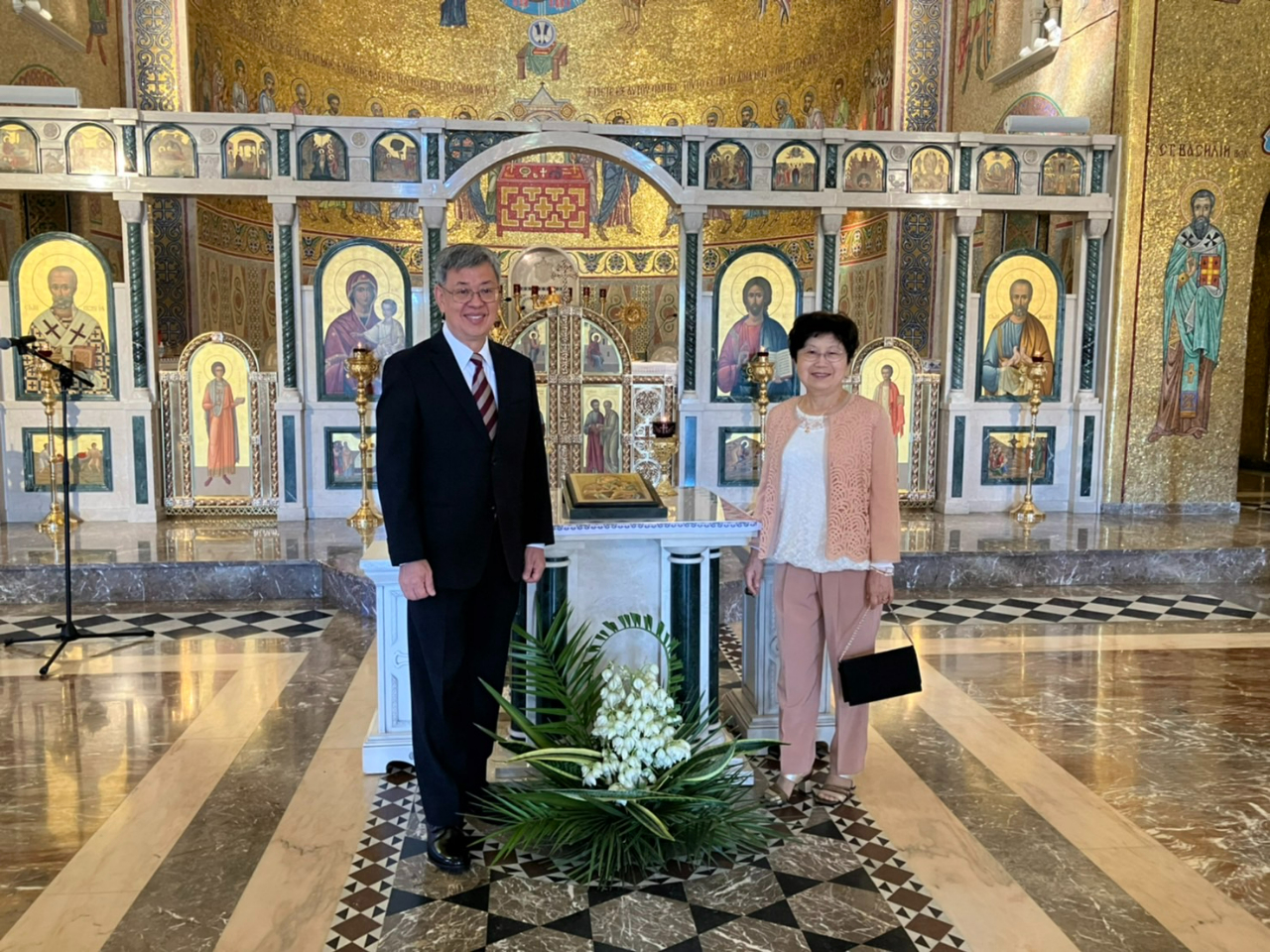 沙曼恆隨後引導陳建仁訪團參觀聖索菲亞大教堂。教堂建於1967年,仿自烏克蘭首都基輔的聖索菲亞主教座堂,教宗若望保祿二世(Pope John Paul II)於1985年將教堂升格為領銜堂區,設有樞機司鐸;1998年,教堂升格為宗座聖殿(minor basilica)。