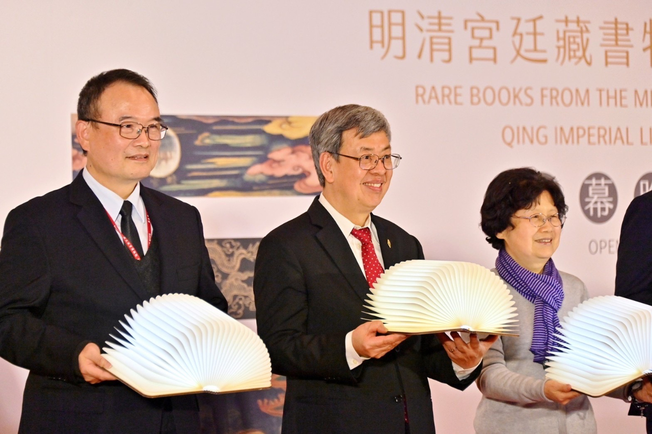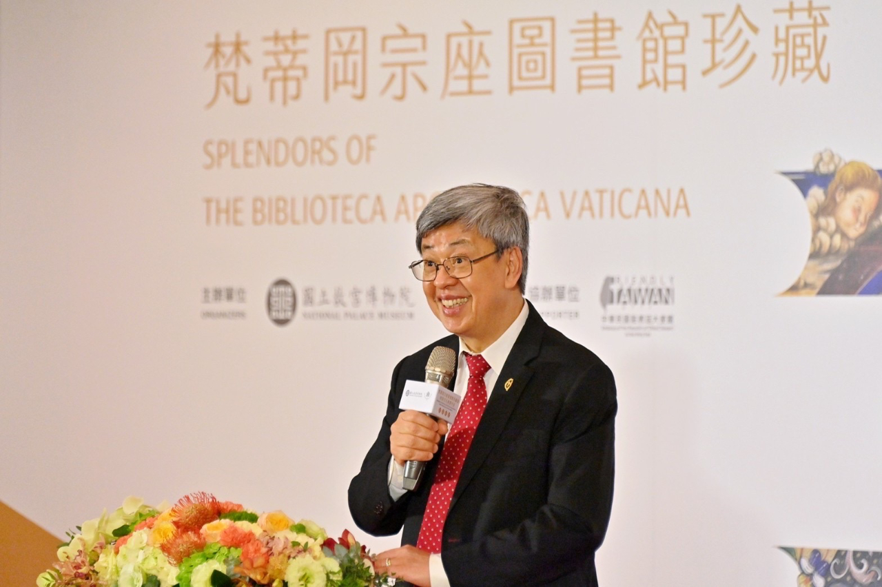 行政院長陳建仁今(10)日前往國立故宮博物院出席「梵蒂岡宗座圖書館珍藏」暨「明清宮廷藏書」特展開幕晚會時表示,他從2017年起,即盼以「圖書交流」方式推動故宮與宗座圖書館文化交流;今(2023)年初他有機會參訪宗座圖書館,更是對其浩瀚的館藏感到震撼無比,感謝故宮、宗座圖書館、外交部等所有同仁的辛勞及付出,成就這一場穿越時空、跨越地理限制,東西合璧的瑰寶盛宴。陳院長也強調,為振興國內藝文產業,政府除投入100多億元經費,推動「新故宮計畫」,提升故宮院區參觀品質外,亦在疫後特別預算中編列經費,擴大發放藝文消費抵用金給18歲至21歲的青少年,鼓勵國人走入博物館、美術館看展覽、觀賞表演藝術等。