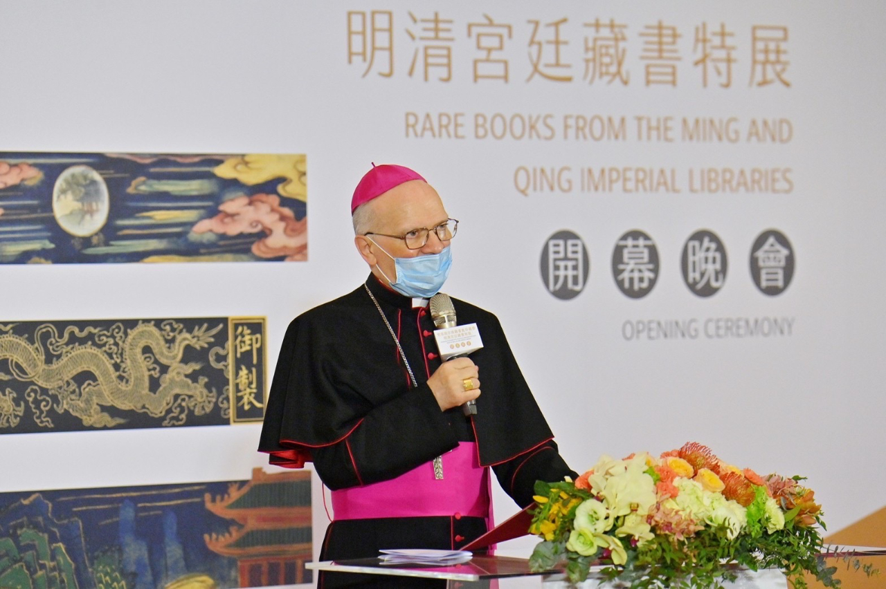 陳院長指出,2016年故宮首次與教廷合辦「天國的寶藏」特展,讓臺灣人民可以一窺兩千多年天主教傳承下來的珍貴文物,當時他很榮幸以副總統當選人身分,受邀出席開幕盛會,而教廷願意出借如此珍貴的寶物,遠渡重洋到臺灣展覽,不只彰顯教廷與臺灣的深厚友誼,也令臺灣所有天主教徒皆感受到教宗特別的關愛與眷顧。陳院長說,2017年,他以副總統身分接待梵蒂岡宗座圖書館暨機密檔案館總館長若望-路易‧布魯格斯(Jean‐Louis Bruguès)總主教時,就希望以「圖書交流」的方式保持雙方互動,後續故宮即開始與宗座圖書館展開長時間的展覽規劃。