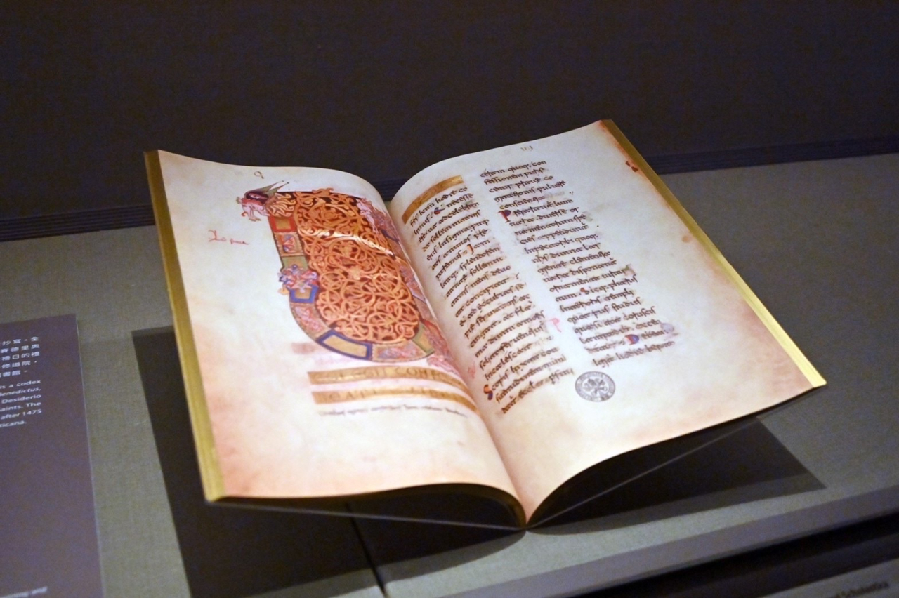 隨後,陳院長進入展區參觀特展,聽取導覽人員依序說明「亞略巴古的丟尼修神學文集盎博羅削拉丁文譯本(Corpus Dyonisianum in the Latin Version of Ambrogio Traversari)」、「羅馬史(History of Rome)」、「地理學指南(Geography)」、「論演說家、演說家、布魯圖斯、論最好的演說家(On the Orator, Orator, Brutus, On the Best Kind of Orators)」、「艾希施泰特花園(Garden of Eichstätt)」及「聖經(《漢娜莎草紙抄本一(Papiro Hanna 1)》又名聖經之母(Mater Verbi)) (Bible)」等展品,並仔細端詳展出的古籍,與扎尼總主教相互討論交流。