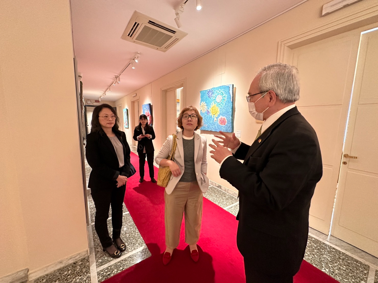 王次長表示,對於駐館自2019年起推動「藝術外交」,陸續辦理了「世界的光-台灣當代藝術展」以及2022年「友善台灣/眾位弟兄書畫展」等活動,令人印象深刻。