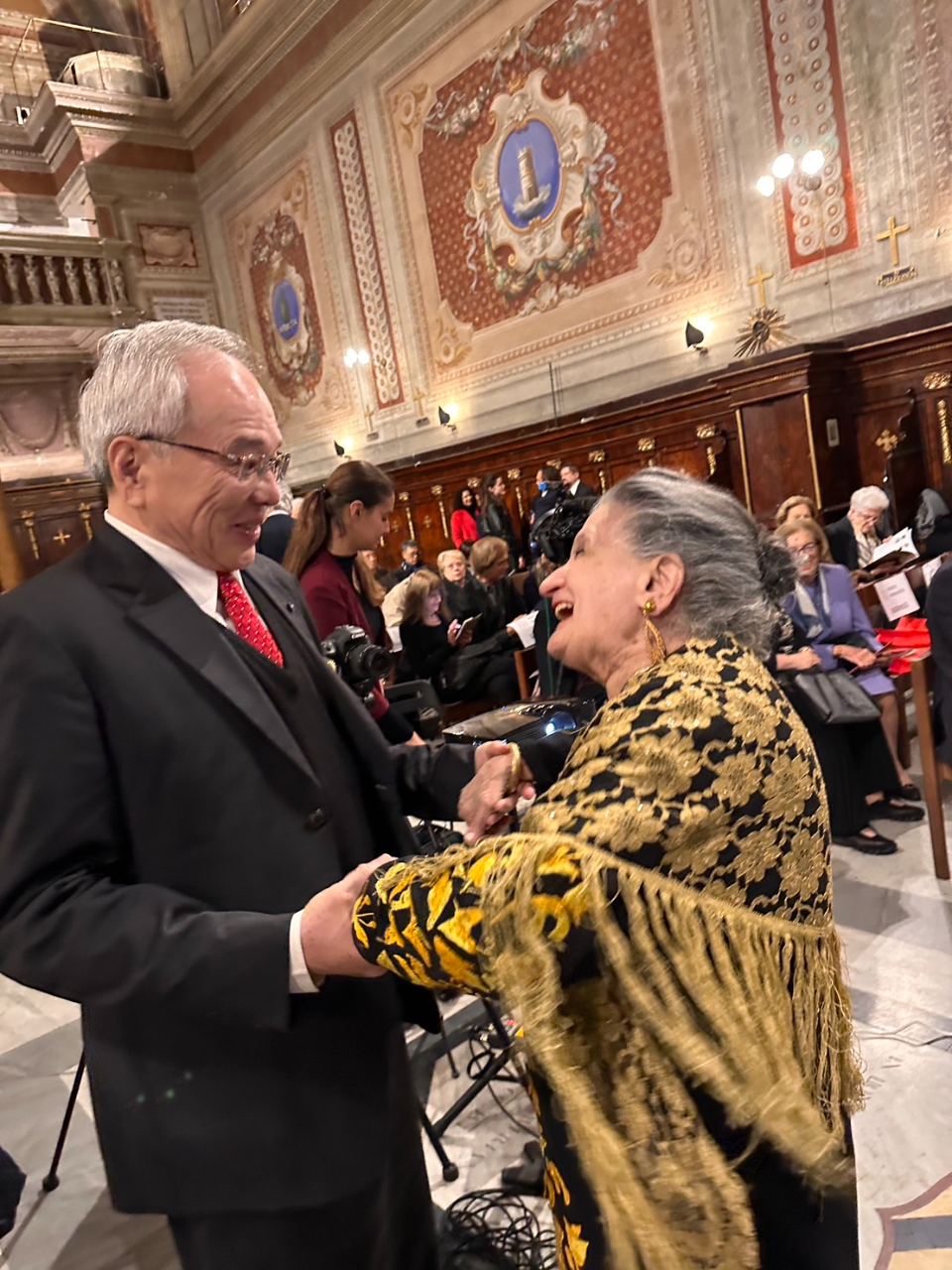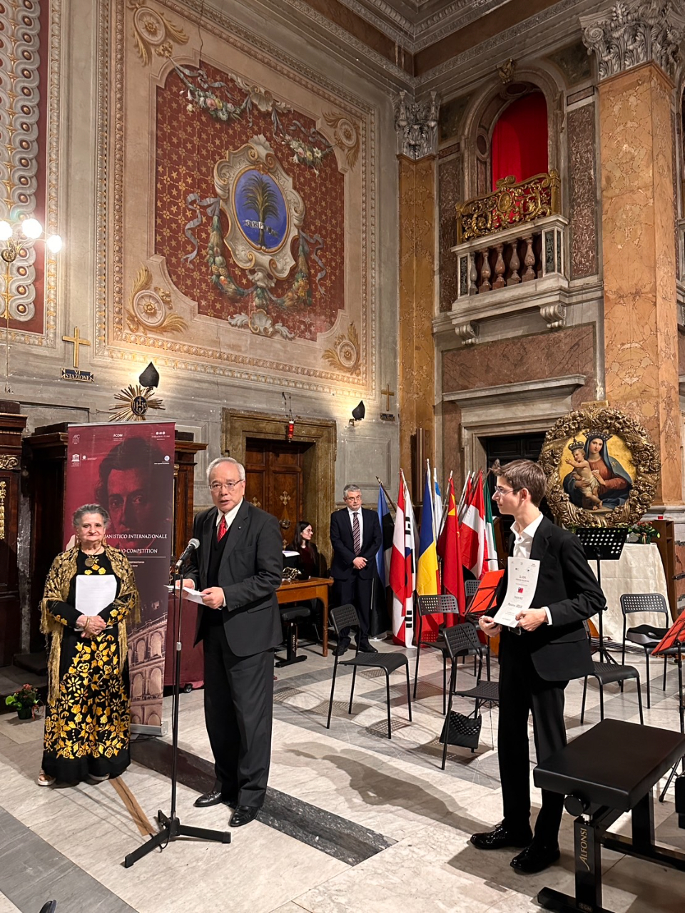 李大使應邀致詞及頒獎,除了恭喜Massimo贏得台灣獎,更感謝羅馬蕭邦文化協會與台灣的長期情誼,寄盼音樂得以療癒人心,並且透過音樂來促進世界友善與和平。