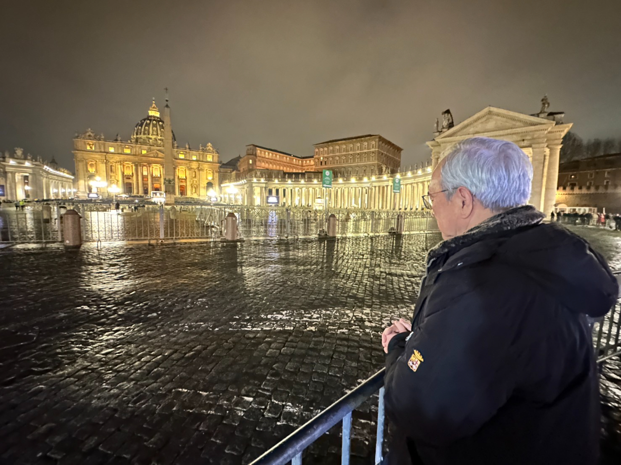 (中央社記者黃雅詩羅馬24日專電)教宗方濟各病情嚴重,梵蒂岡今晚起在聖伯多祿教堂舉行祈福儀式,儘管天氣濕冷,仍有許多信徒冒雨參加。駐教廷大使李世明也特別出席,代表台灣人民與政府祈禱教宗早日康復。