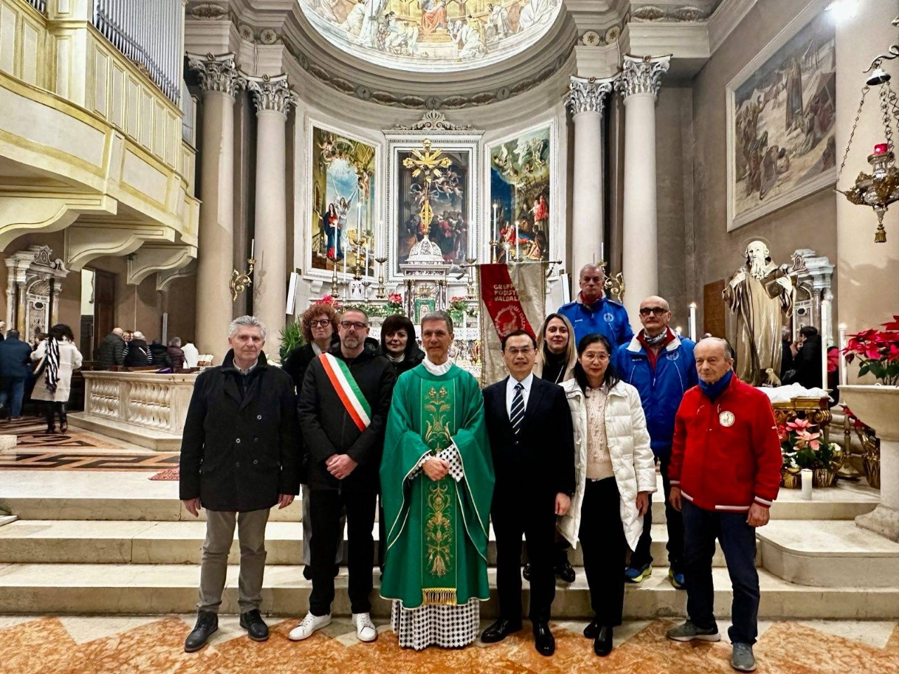 賀大使夫婦於1月17日晚間出席在Parrocchia di Santa Maria Maggiore教堂舉行之蒙市主保聖安東尼瞻禮彌撒(Festa di Sant’Antonio Abate),由蒙市教區神父Don Giuliano Zanini主禮,Z神父親自向賀大使夫婦問候致意,並在彌撒開始前由司儀特別向在場近300位教友宣布及感謝來自台灣的賀大使夫婦之參與。