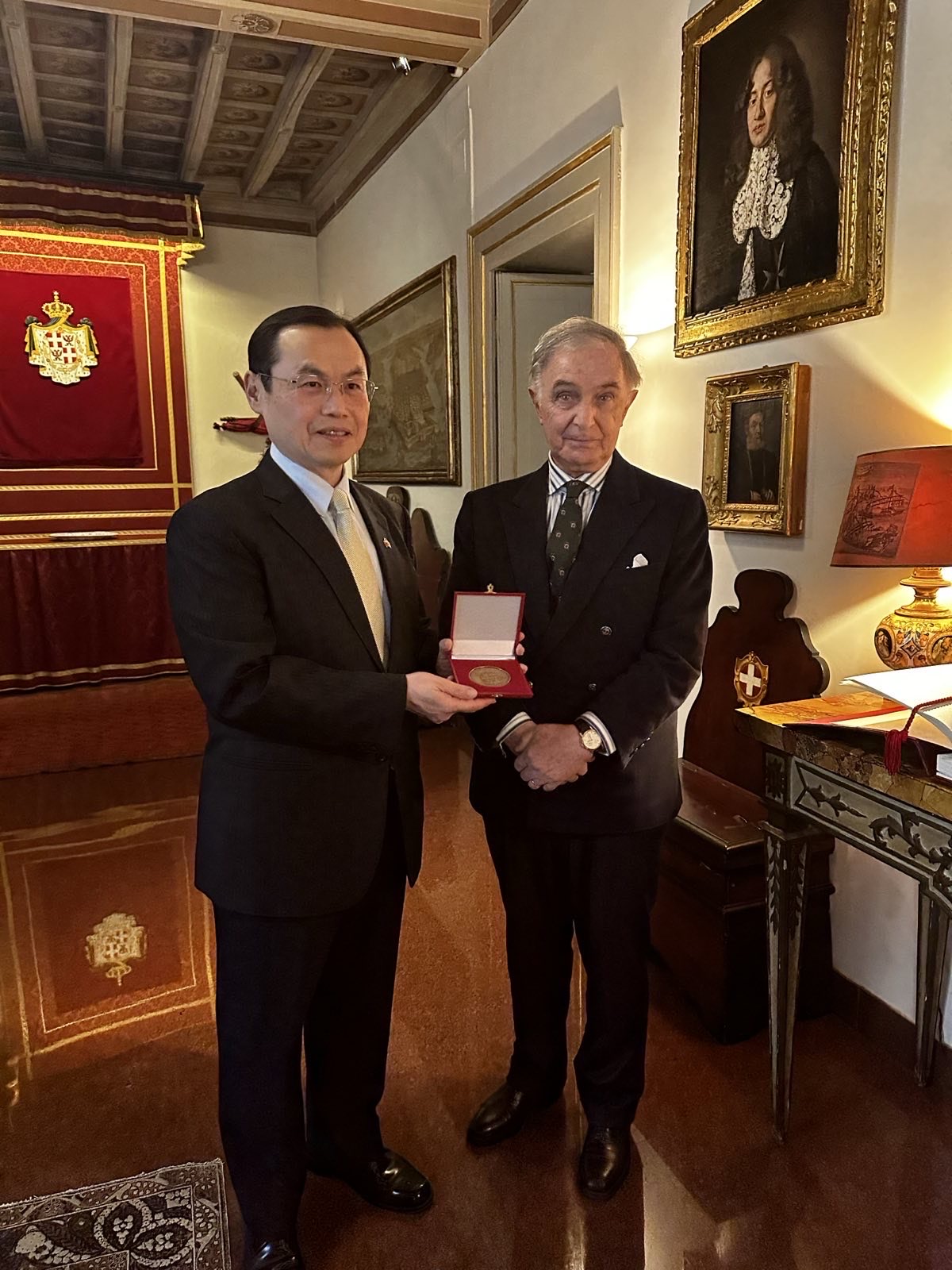 本館賀大使忠義偕郭秘書倢妤於2026年1月26日赴馬爾他騎士團總部,代表台灣政府捐贈贊助款予馬團在伯利恆(Bethlehem)推動之「聖家醫院濟貧計畫」(Holy Family Hospital Poverty Alleviation),馬團總理兼外交部長(Grand Chancellor) Riccardo Paternò di Montecupo代表受贈,馬團外交事務秘書長(Secretary General for Foreign Affairs) Amb. Giampaolo Cantini、馬團衛生部長室幕僚長(Chief of Cabinet of the Grand Hospitaller)Mr. Ivo Graziani及外交部主管亞洲事務官員Ms. Domitilla Romanini等在場觀禮。