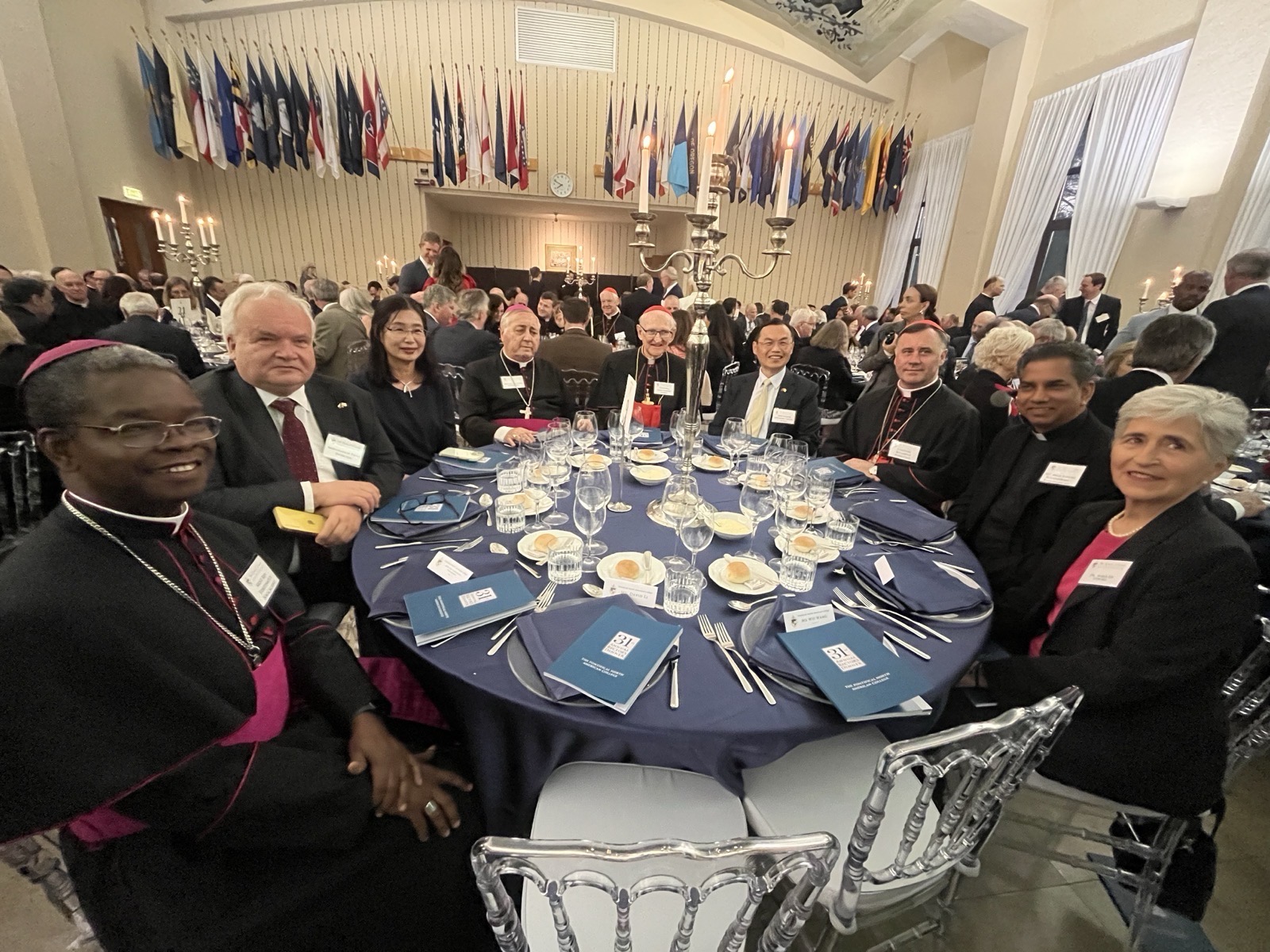 當晚,本館獲安排與羅馬四大特級宗座聖殿中「城外聖保祿大殿」(Basilica di San Paolo fuori le Mura)總監Card. James Michael Harvey樞機主教及「聖母大殿」(Basilica di Santa Maria Maggiore)總監Card. Rolandas Makrickas樞機主教同桌,同桌賓客也包括:宗座外交學院院長Arch. Salvatore Pennacchio總主教、教廷福音傳播部秘書長Arch. Fortunatus Nwachukwu總主教、教廷跨宗教對話部秘書長Msgr. Indunil J. Kodithuwakku K.蒙席、捷克駐教廷大使Amb. Pavel Svoboda,及教廷主教部成員Dr. María Lía Zervino等重要教廷官員,席間大家熱烈互動交流。