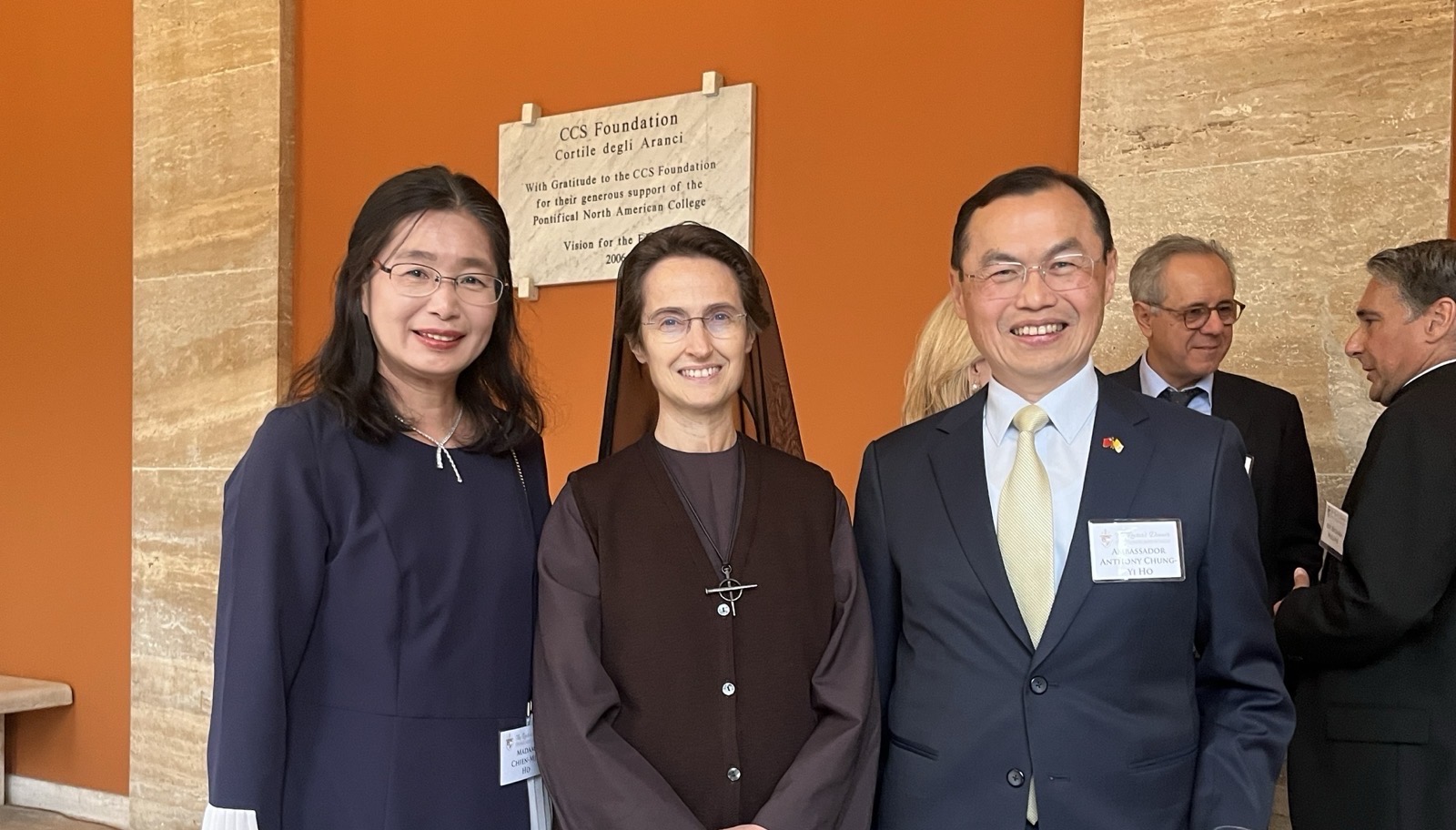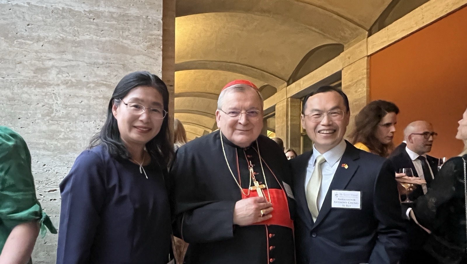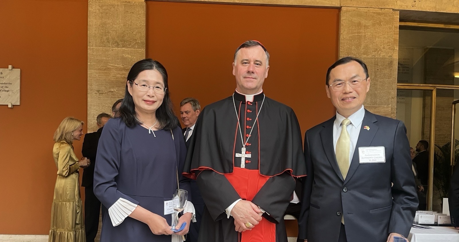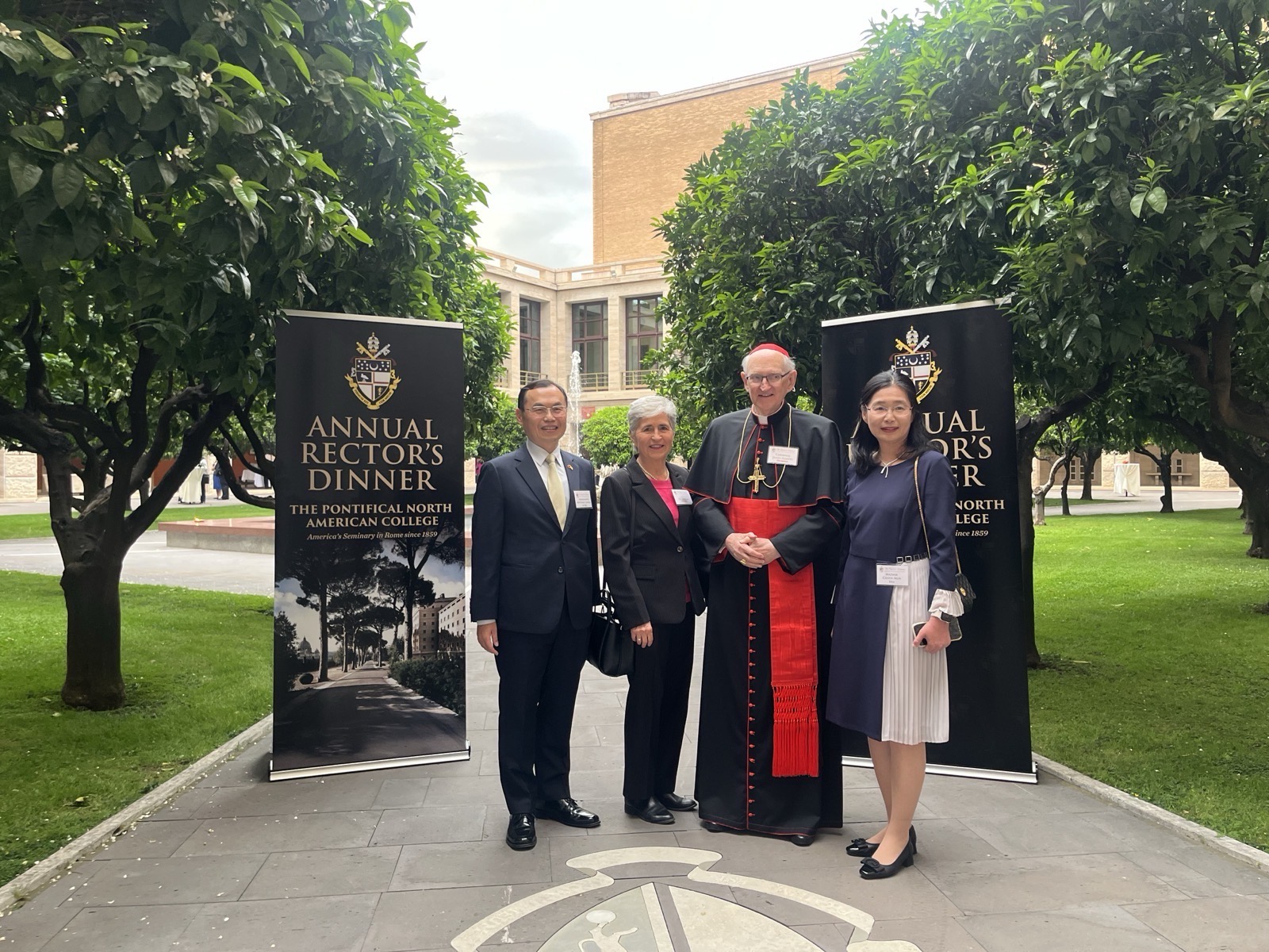 本館賀大使夫婦偕李參事嘉維及王秘書語薇,於4月16日晚間應邀出席宗座北美學院(Pontifical North American College)第31屆年度院長餐會(Rector’s Dinner),有多位樞機主教、總主教、教廷官員、羅馬政學界天主教人士等逾400位賓客出席。