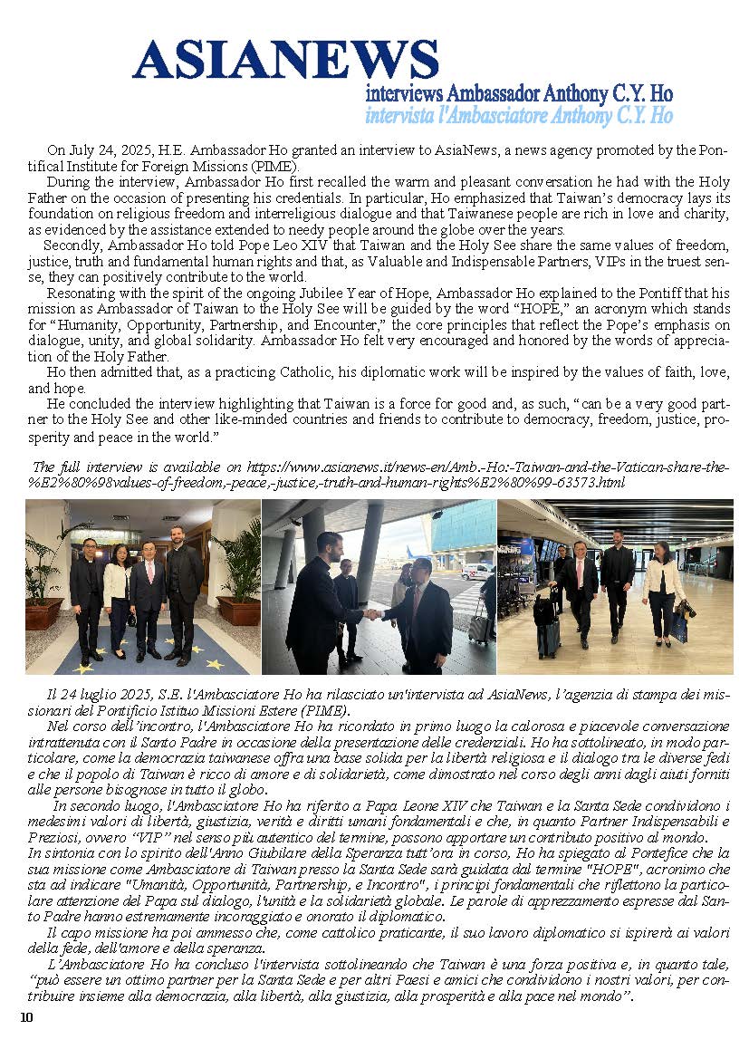 Newsletter H.O.P.E. Issue No. 1 (May-July 2025... - Embassy of the Republic of China (Taiwan) to the Holy See 駐教廷大使館 ::: Skip to main content