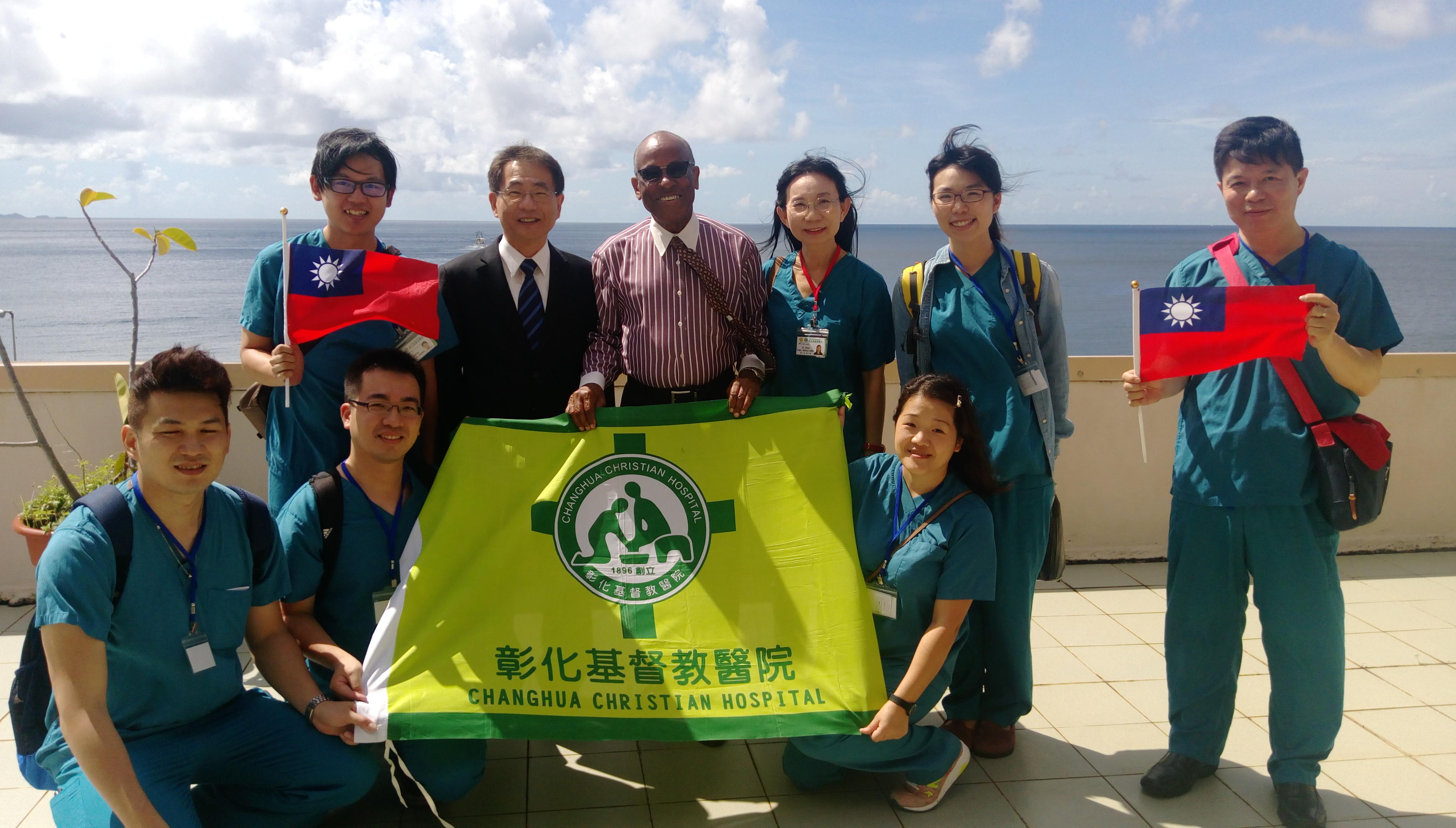 彰基義診團乙行7人,由彰基海外醫療服務中心高小玲博士率團,成員包括家醫科醫師鍾明成、耳鼻喉科醫師洪雲聰、中醫師鐘上琳、加護病房護理師許家甄、急診護理師吳文富及醫品部副主任張旭東。自11月21日在聖文森義診三週,預計12月10日離聖返台,這是彰基團第10次在聖文森義診。
