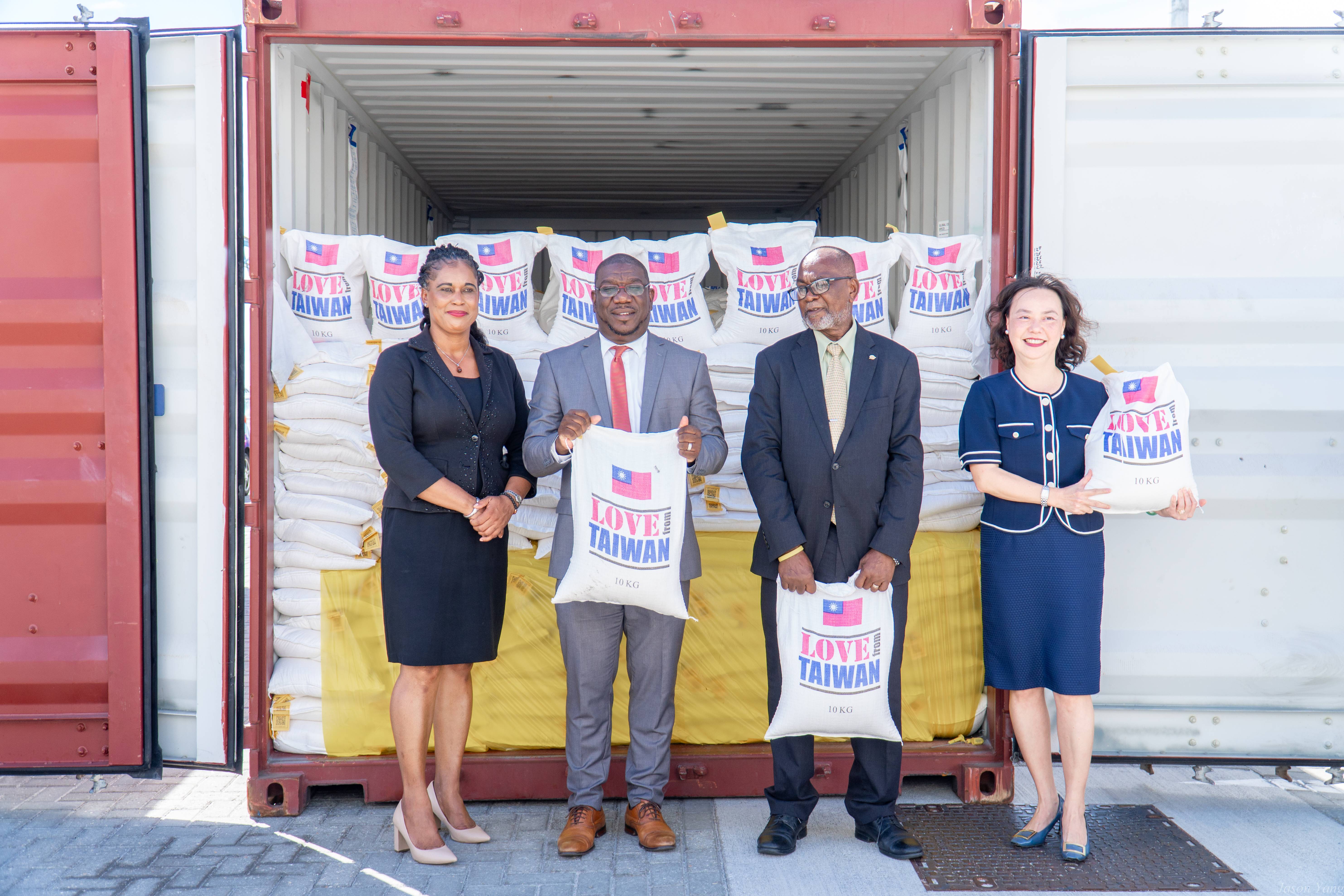 中華民國駐聖文森國大使館與聖文森國政府於2026年1月13日週二,在首都金石城的新現代港(New Modern Port)舉行隆重的贈交儀式 。駐聖文森國大使范惠君代表台灣人民與政府,正式贈交題揭物資予聖國政府,旨在強化該國的糧食安全、災害應變能力與社會韌性。