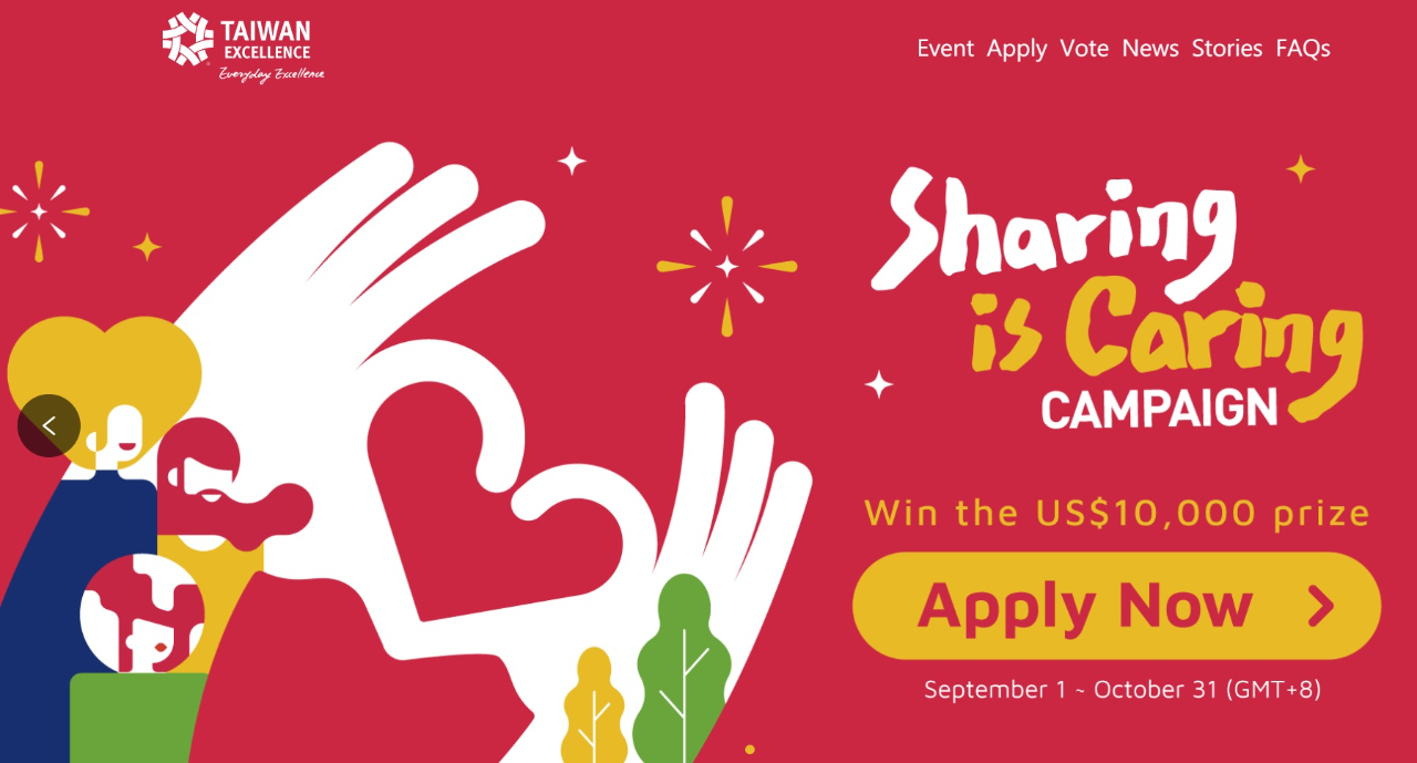 活動將選出最多12項提案,前3名提案將獲得台灣精品的獨家資助,以實現他們的 Sharing is Caring 理念,包括前3名獲獎提案每案將獲得#1萬美元 的獎金,還將獲得#15萬美元 的執行預算,並由外貿協會(TAITRA)指定合作夥伴來執行其提案。