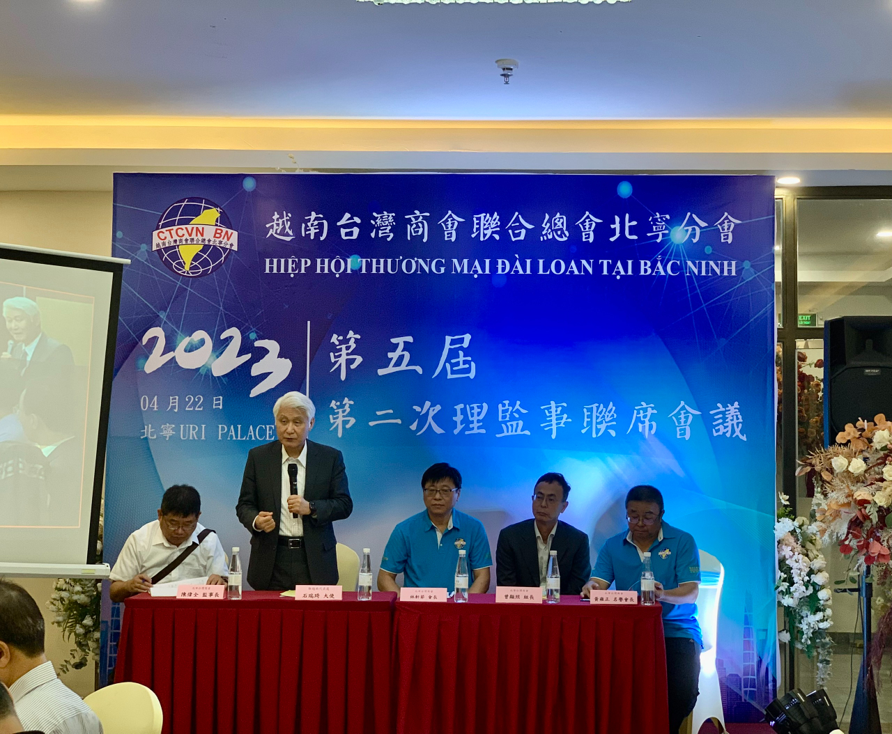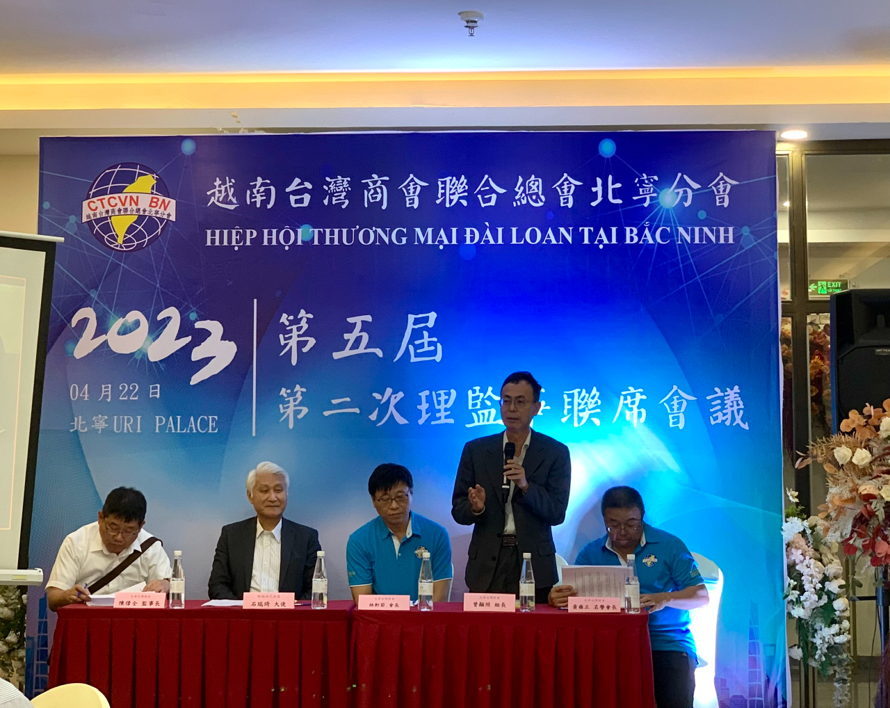 越南臺灣商會聯合總會北寧分會4月22日於北寧省URI PALACE舉辦「第五屆第二次理監事聯席會議」,由會長林軒節及監事長陳偉全主持,駐越南代表處大使石瑞琦偕經濟組組長曾顯照應邀出席。