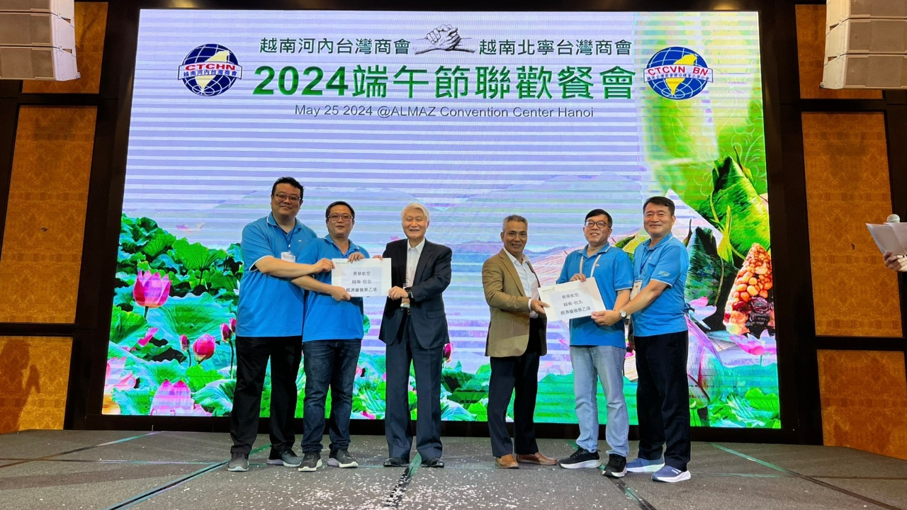 越南臺灣商會聯合總會河內分會與北寧分會5月25日分別召開「第十七屆第二次理監事聯席會議暨第一次會員大會」及「第五屆第九次理監事聯席會議暨第三次會員大會」,更首次攜手舉辦「2024年端午聯歡晚會」,包括河內分會會長羅世良、北寧分會會長林軒節、越南臺商總會監事長黃雍正、越南臺灣事務委員會秘書長阮側柏(Nguyễn Trắc Bác)、臺灣貿易中心駐河內辦事處主任施懿恬及兩會會員近230人出席,駐越南代表處大使石瑞琦偕經濟組組長丁偉及僑務秘書蔡佩珊應邀參加。