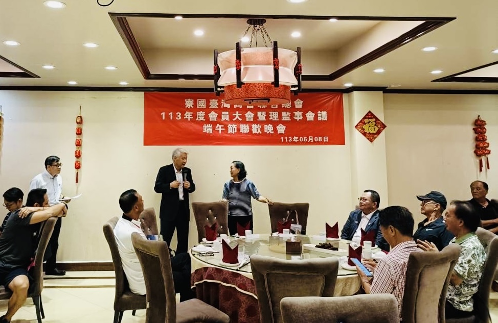 寮國臺灣商會聯合總會6月8日舉辦「113年度會員大會、理監事會議暨端午節聯歡晚會」,由總會長施玉秀主持,包括僑務委員洪志華、僑務顧問陳坤樹、林福霖、僑務促進委員劉啟宗,以及商會理監事及會員等約60人參加。駐越南代表處大使石瑞琦偕政治組秘書黃子綪及僑務秘書蔡佩珊應邀出席。