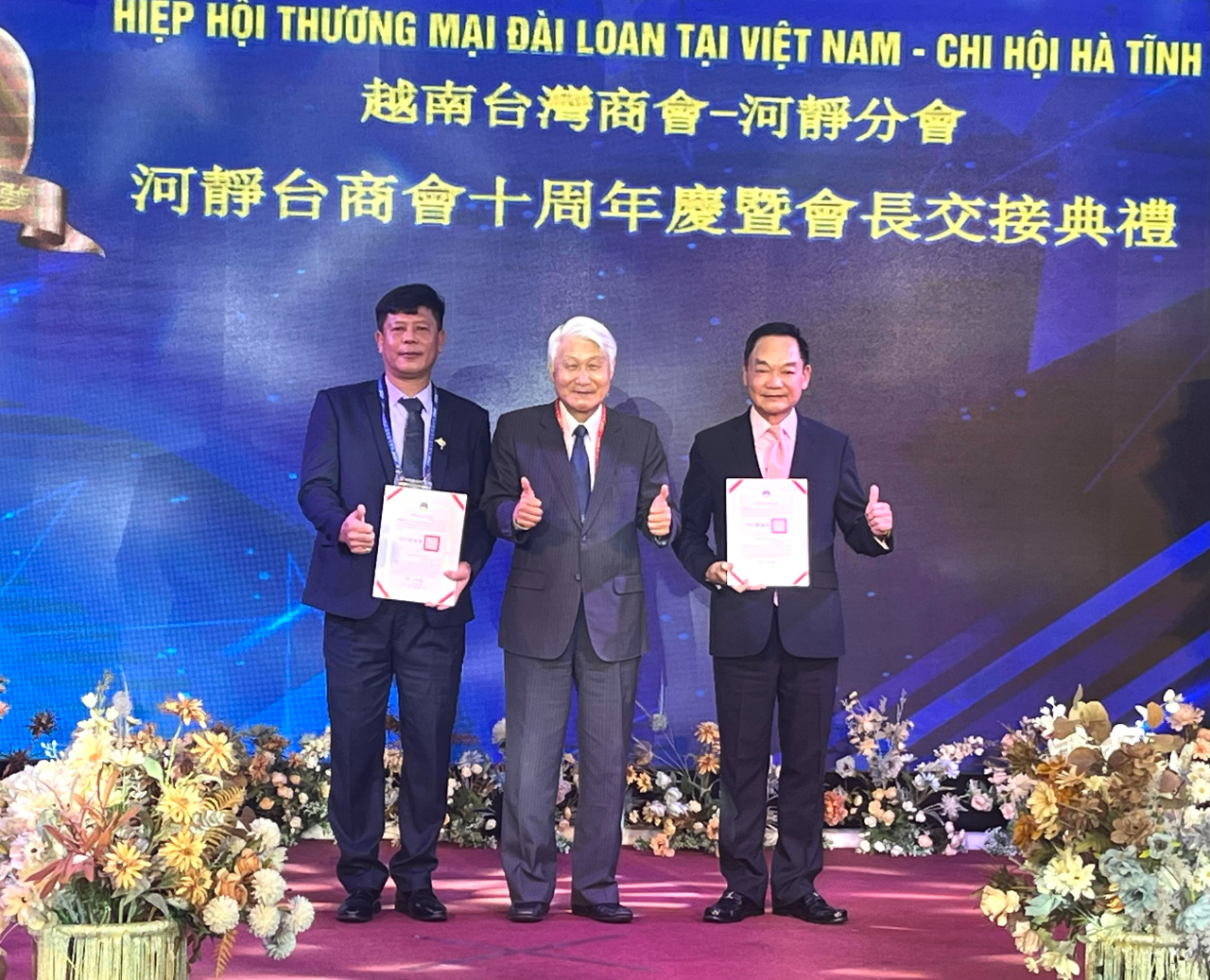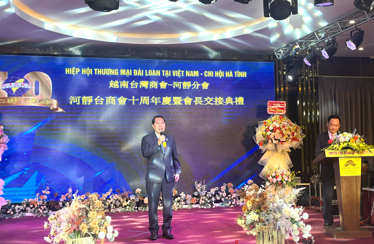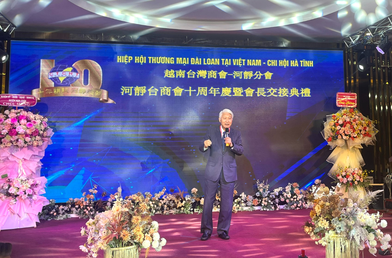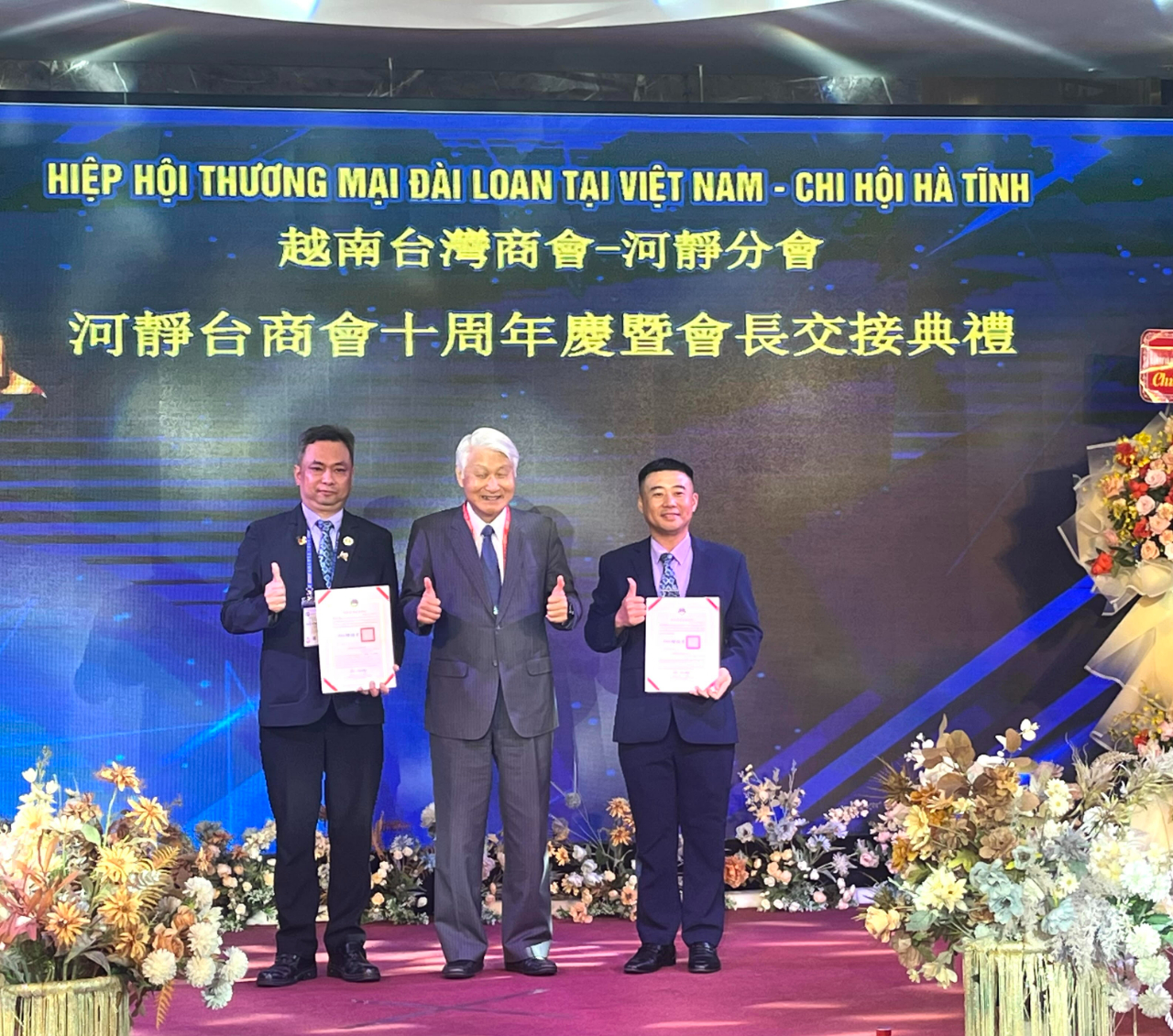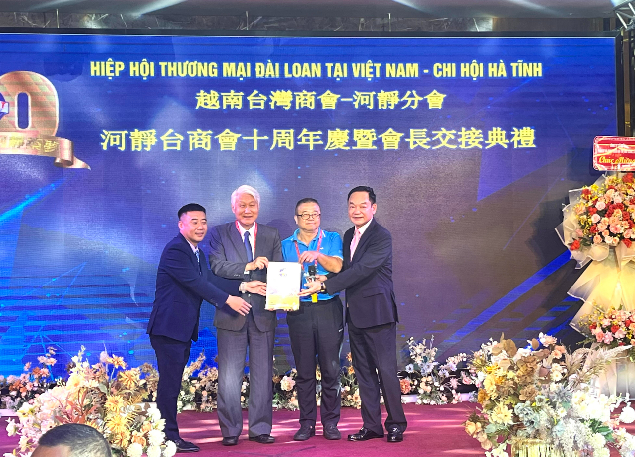 越南臺灣商會聯合總會河靜分會於11月23日舉辦「10週年慶暨第五屆、第六屆理監事交接典禮」,包括駐越南代表處大使石瑞琦、僑務秘書蔡佩珊、僑務委員洪志華、吳明穎、僑務諮詢委員游明達、越南臺商總會總會長蔡文瑞、監事長黃雍正,以及河靜省、義安省政府官員等人與會。