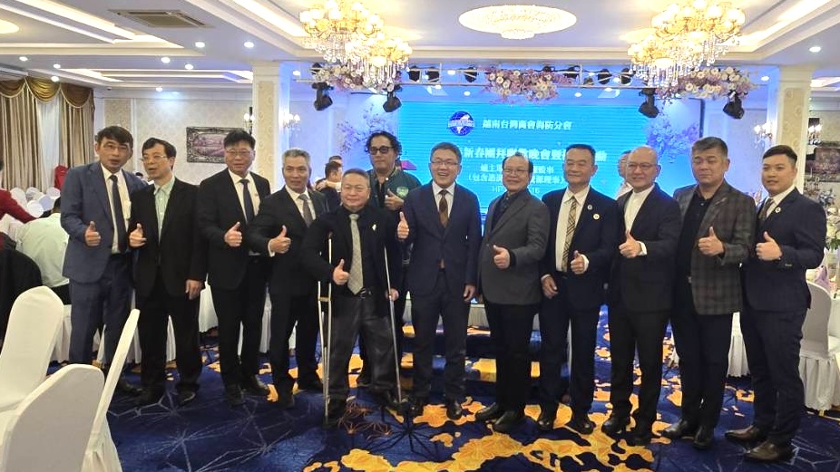 越南臺灣商會聯合總會海防分會於2月16日舉辦「2025年新春團拜聯歡晚會暨摸彩活動」,由會長王坤生主持,駐越南代表處大使劉世忠偕公使林易民、經濟組組長丁偉、秘書劉行健、政治組秘書詹修銘、黃子倩、行政組秘書張乃介及僑務秘書蔡佩珊應邀出席。